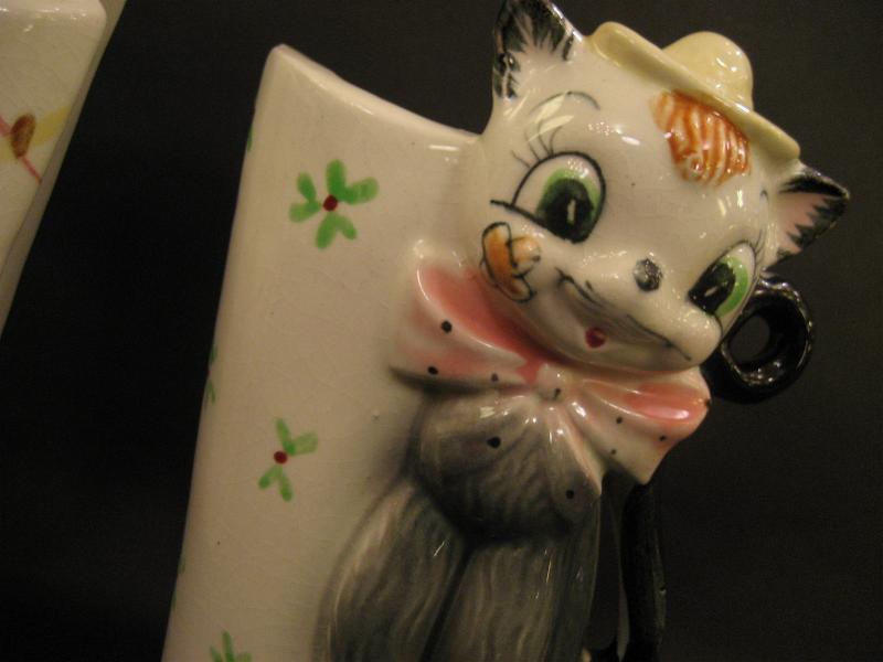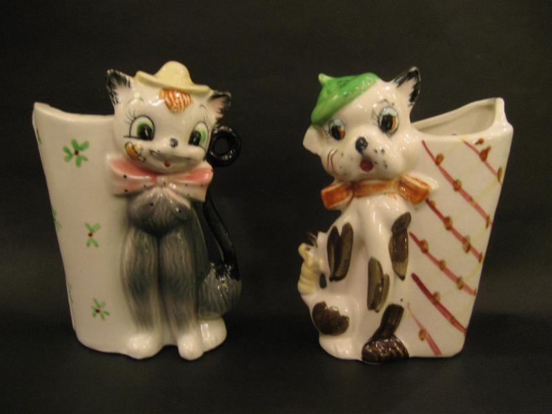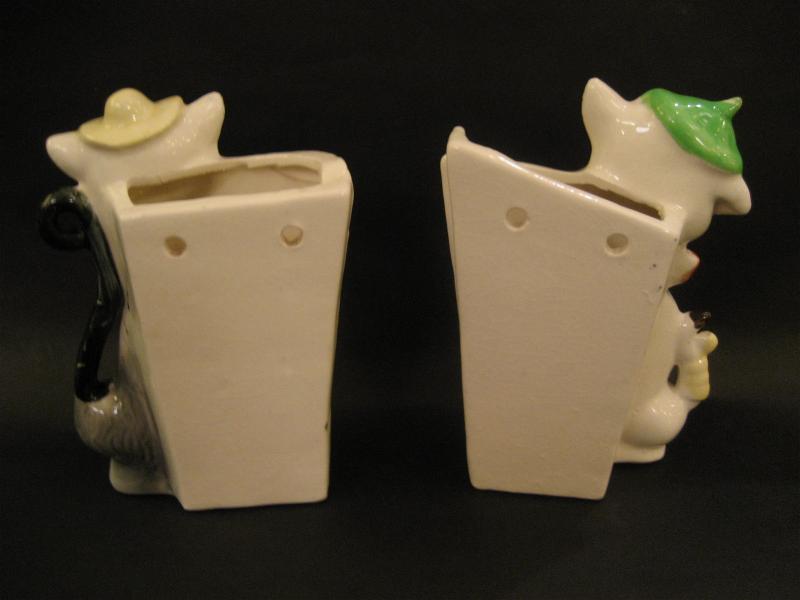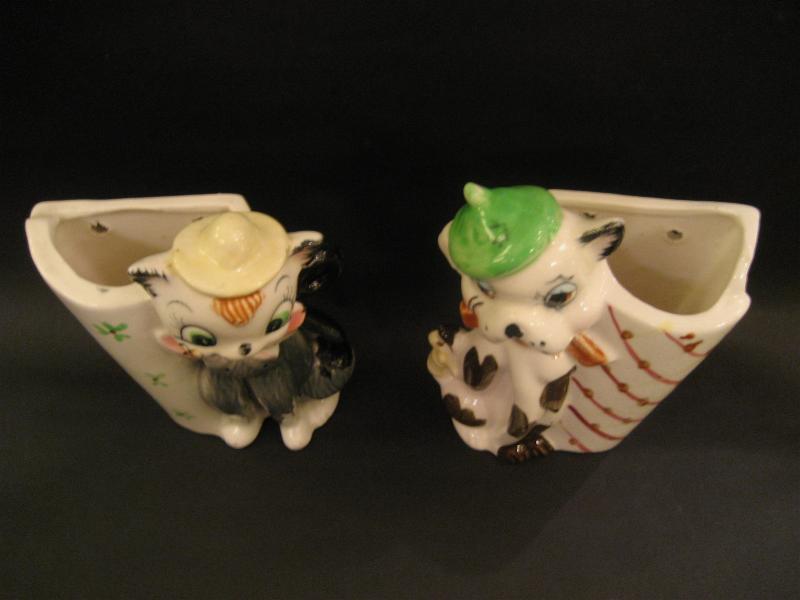 | ビンテージペアプランター / 50-60年代 USA. 陶器製のかわいいイヌ・ネコ置物でサイドがプランターベースになっているタイプ。バックに壁掛け用のフックホールもあいているのでディスプレイの幅も広いキュートでGOODなビンテージデコレーションピース! |