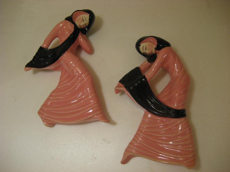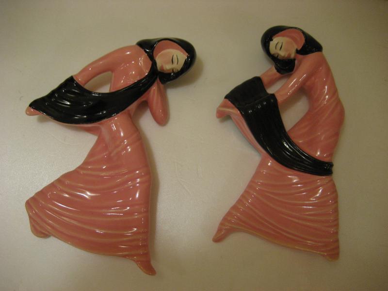 | ビンテージペアレディダンサーデコ / 50年代 1954年製 セラミックアーツスタジオ社 MADE IN USA. セラミックアーツのシャドウダンサーシリーズのレアカラーでクールなクロピンカラータイプ壁掛け。セラミックアーツ社の正規本に掲載されています(1954年のページ)。もちろんバックにはセラミックアーツ社のスタンプマーク付き。クールでGOODなビンテージデコレーションピース! |