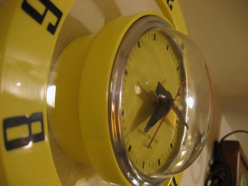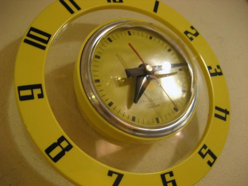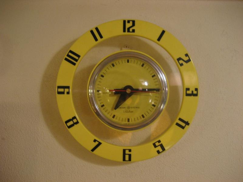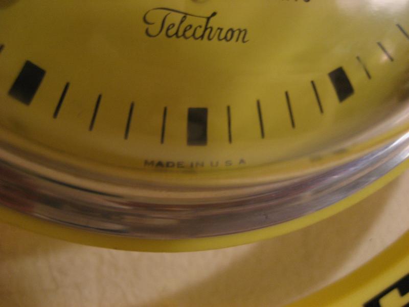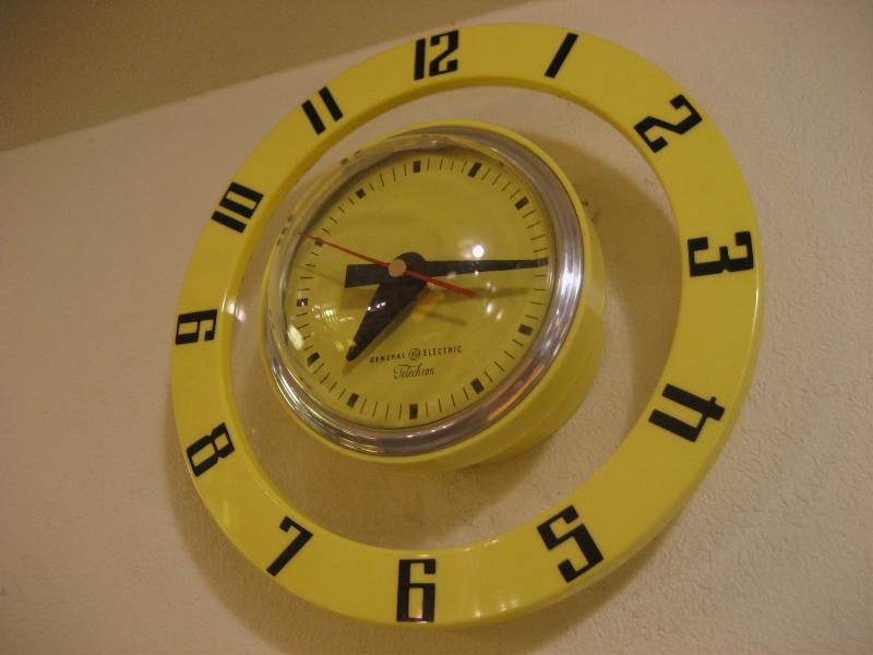IN USA. GE社の"Telechron"ブランド。UFOシェイプでスペーシーフォルムの壁掛け時計。独特なドームタイプフロントカバーにイエロー文字盤、ブラックインデックス&ハンド(秒針はレッド)。クールでGOODなビンテージタイムピース! ムーブメントはバッテリータイプ(単3x1個使用)に交換済みでですので時間は正確です。 |