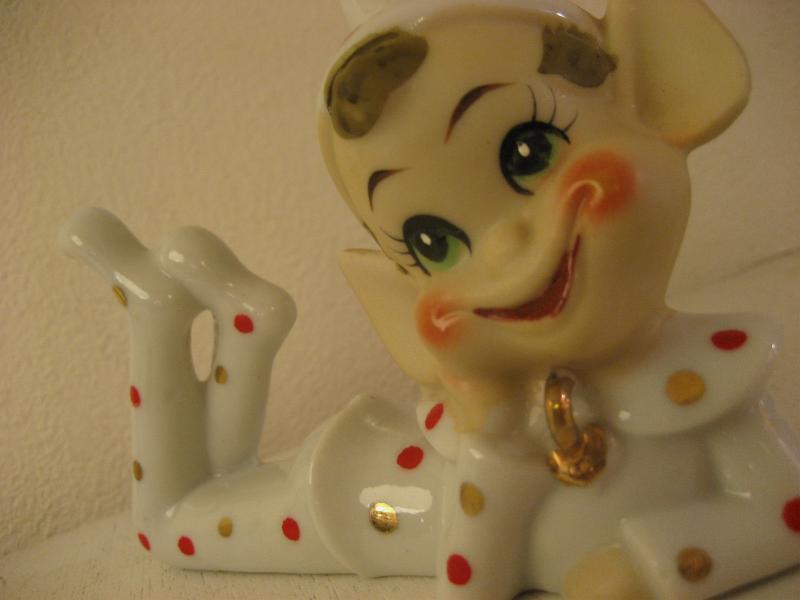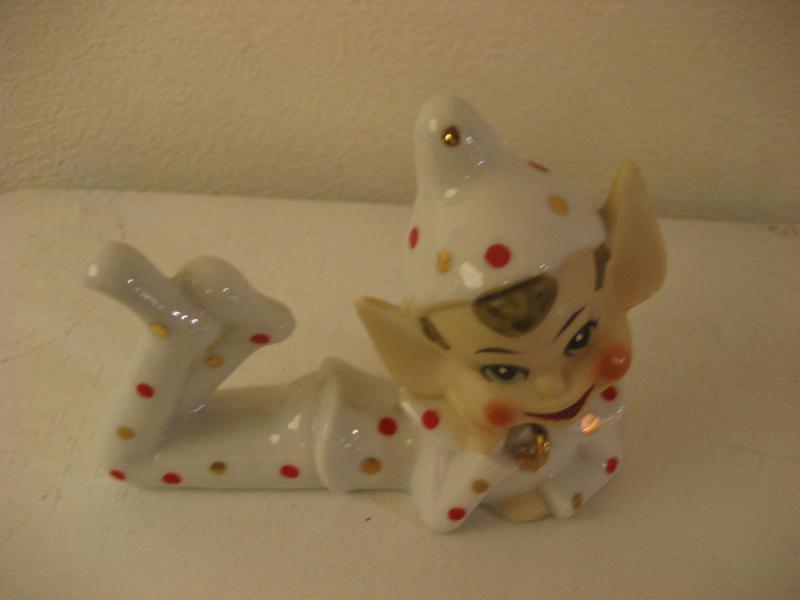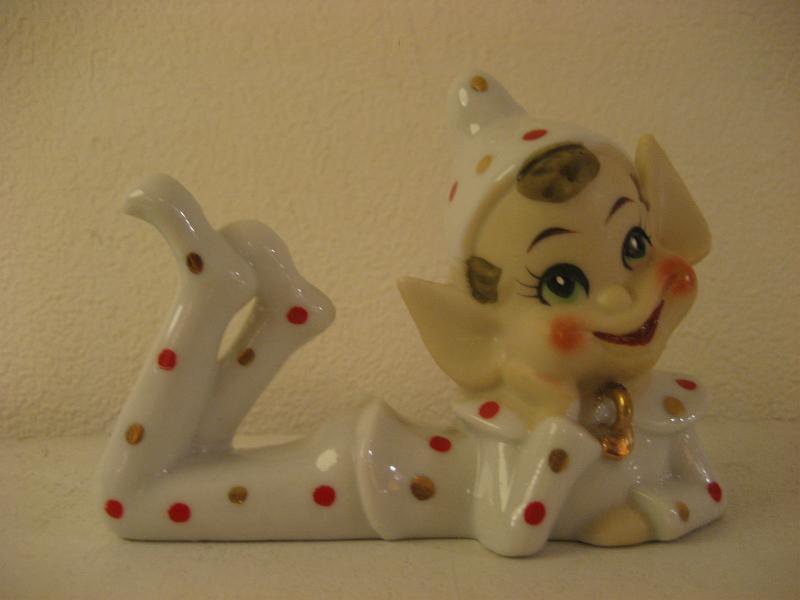 | ビンテージ置物 / 50年代 USA. 陶器製の妖精置物です。寝そべって頬杖ついたポーズでボディはかわいいドット柄。シェルフなどのディスプレイにキュートでGOODなビンテージディスプレイピース! |
