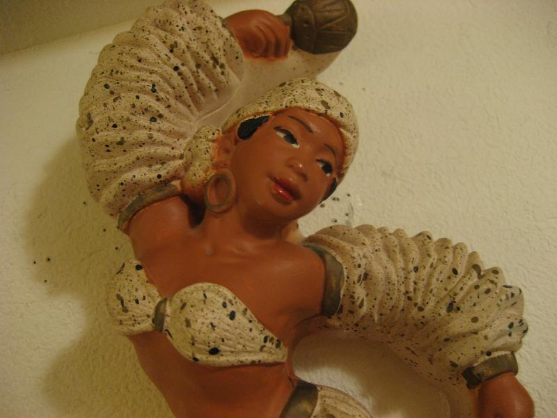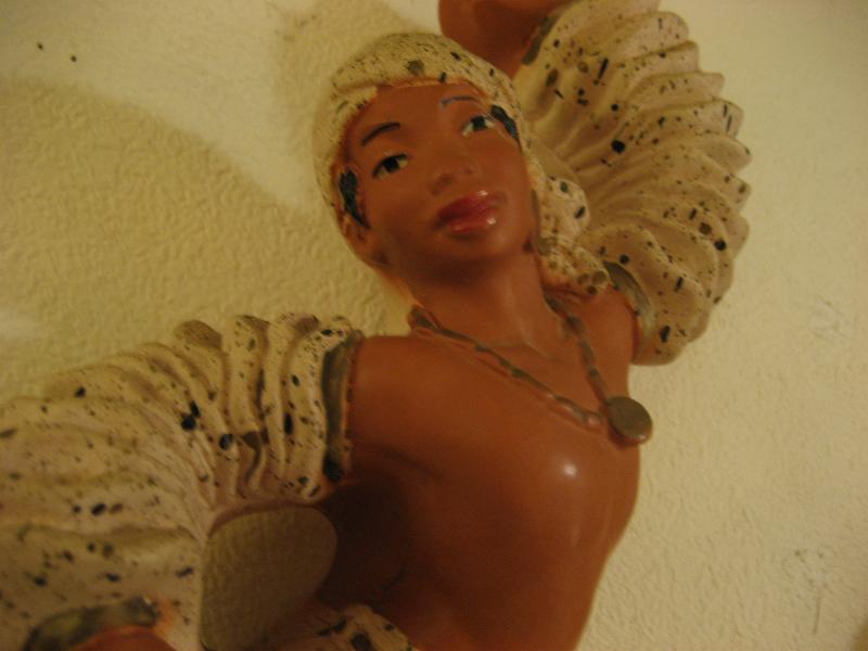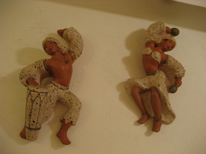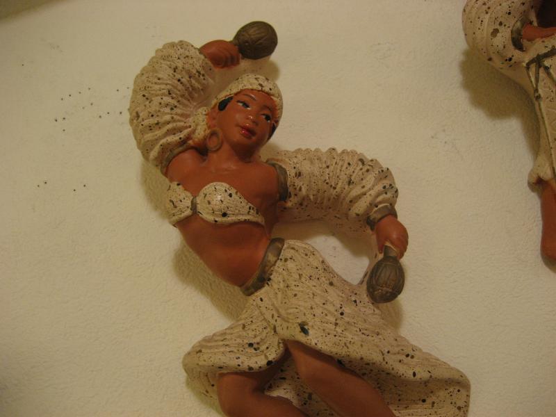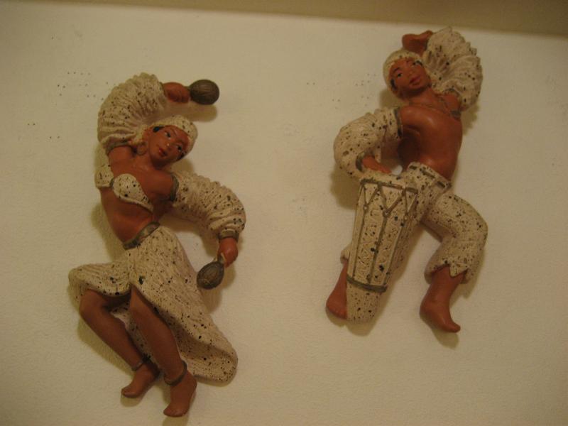 | ペアビンテージダンサーウォールデコ / 50年代 ©1955 ユニバーサル社製 USA. チョークメイドのエスニックペア壁掛け。男性は打楽器、女性はマラカスを持って踊っているポーズ。クールでGOODなビンテージウォールピース! |