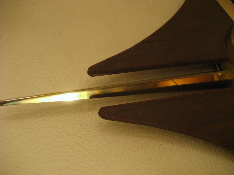 USA. ゴールドクロススポークにウッドメイドのブーメランデコレーションのアトミック壁掛け時計。クールでGOODなビンテージウォールタイムピース! ムーブメントはバッテリータイプ(単3x1個使用)ですので時間も正確です。 |