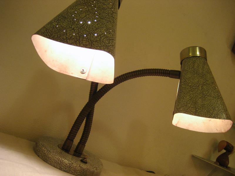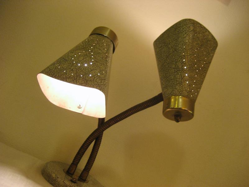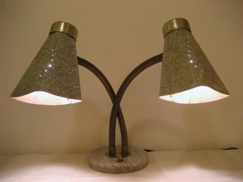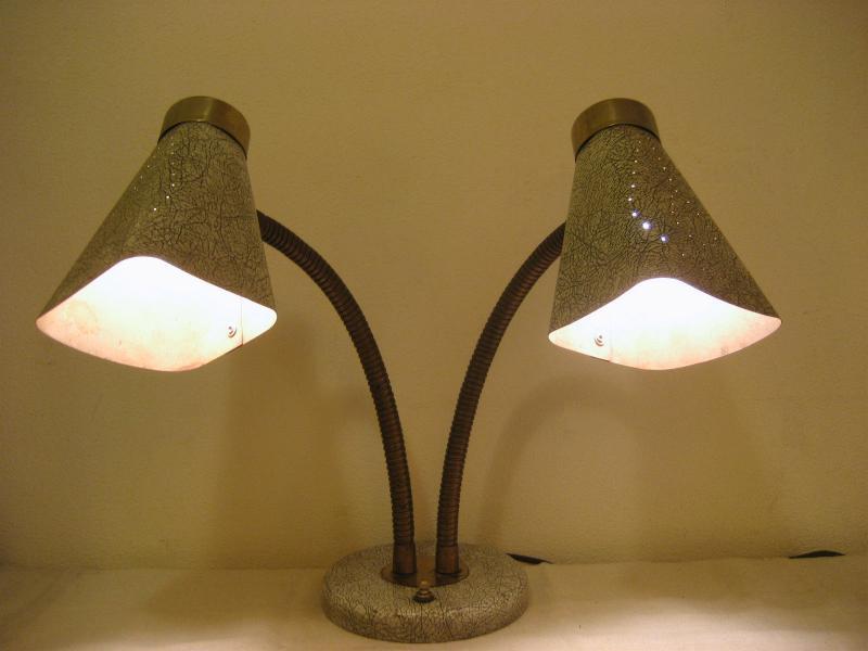 | アトミックテーブルランプ / 50年代 USA. レアなスクエアシェイプシェードのツインシェードランプ。フレシキブルアームですのでポジションも自在。。。クールでGOODなアトミックライティングピース! 電源は家庭用コンセント対応コードで、スイッチはベースに付いています(3 way) |