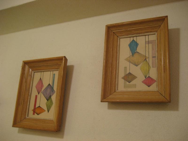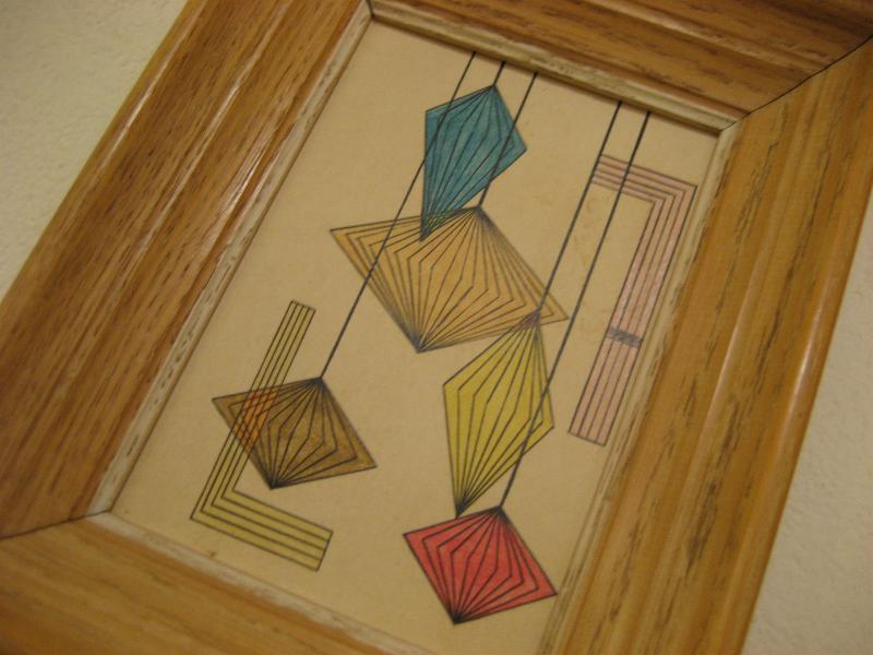 | ペアビンテージフレームアート / 60年代 USA. ウッドフレームにモダンライティングのような絵柄のビンテージフレームアート。お部屋のアクセントにクールでGOODなビンテージウォールデコレーションピース! |