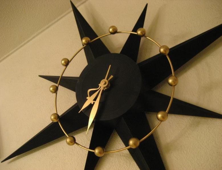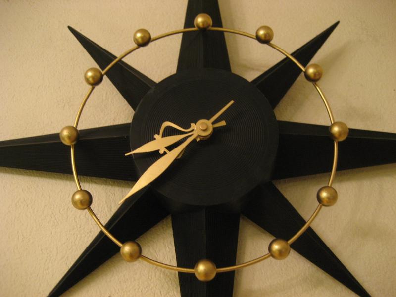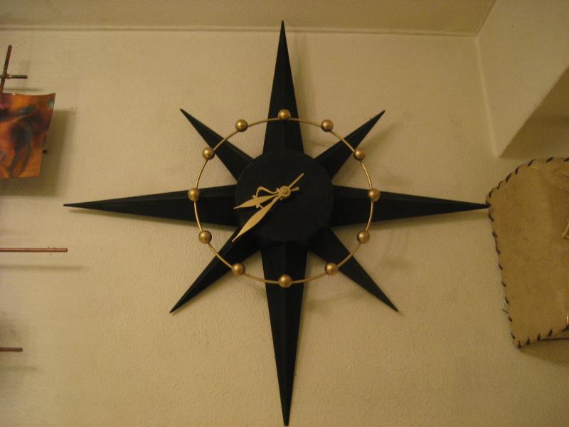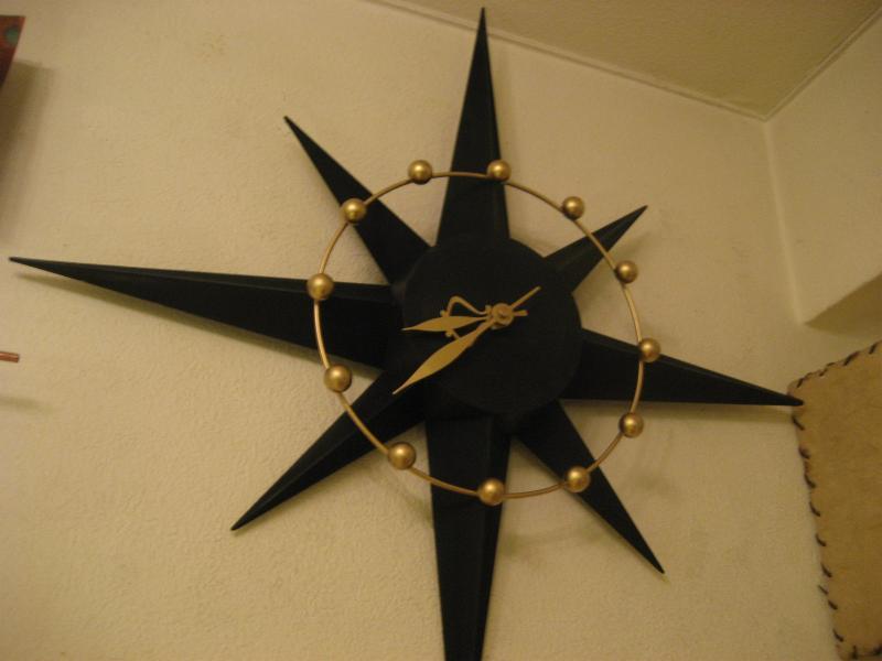 | ビンテージスターバーストクロック / 50-60年代 SPARTUS社, MADE IN USA. スターバーストタイプのアトミック壁掛け時計。ボディはプラスチック製でダイヤルはゴールドブラスのアトミックワイヤーフレームと時間のゴールドスポットアクセント。クールでGOODなビンテージタイムピース! ムーブメントはバッテリータイプ(単3x1個使用)に交換済みですので時間も正確です。 |