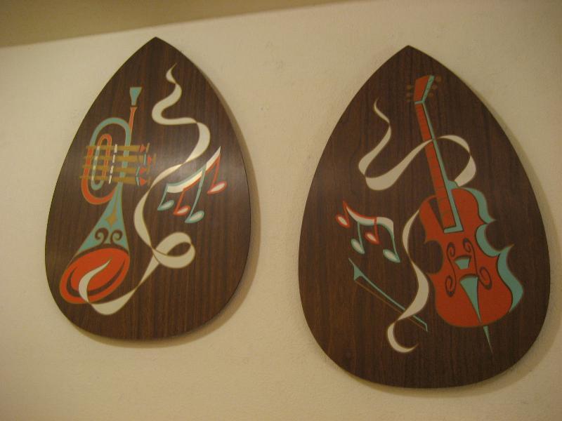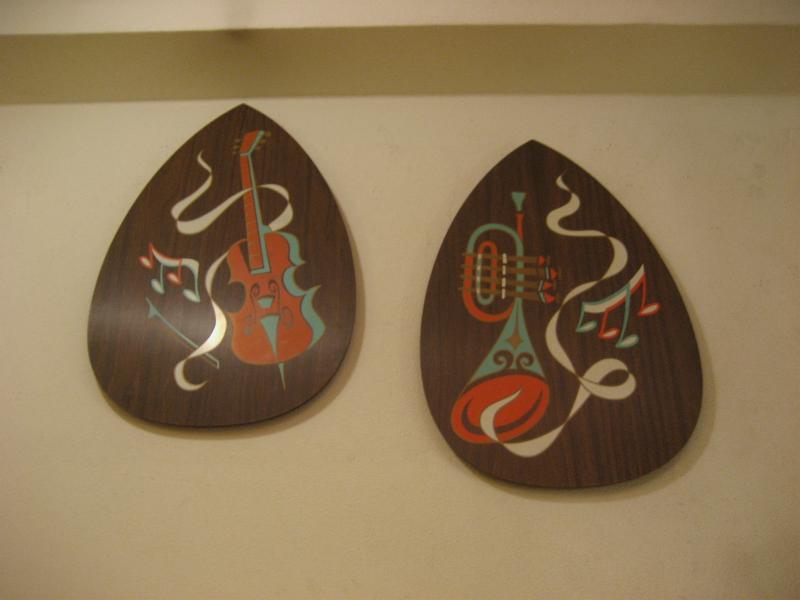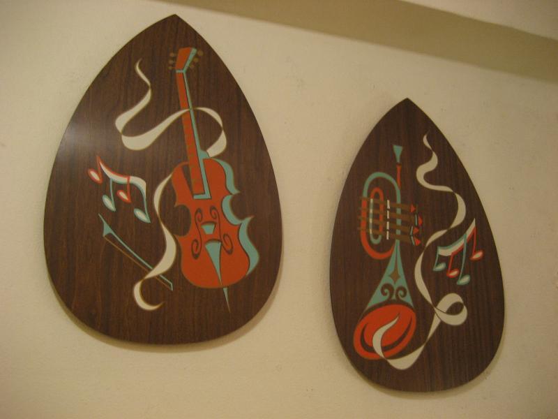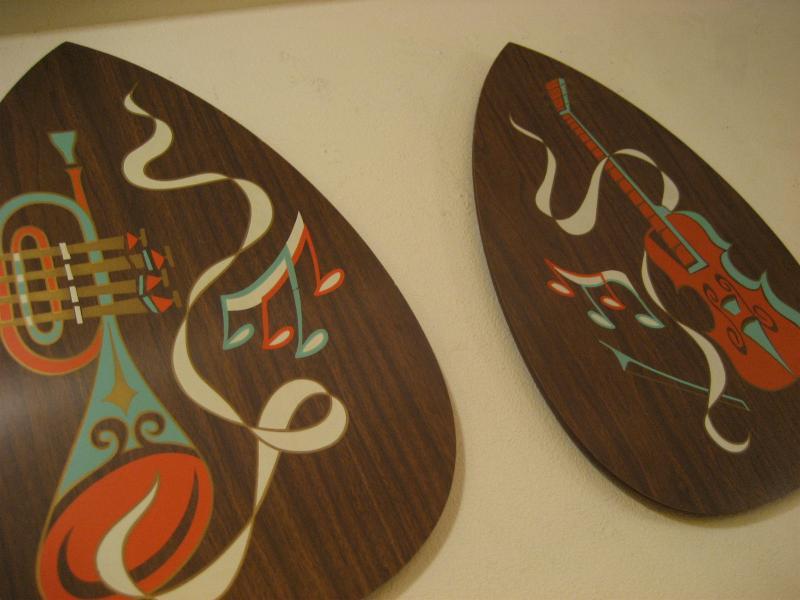 | ペアビンテージウォールデコ / 50-60年代 ターナーウォールアクセサリー社 USA. ウッドメイドのティアドロップシェイプのビンテージウォールデコセット。絵柄は弦楽器と管楽器でそれぞれ音符などもプリントされています。 クールでGOODなビンテージウォールデコピース! |