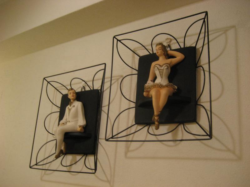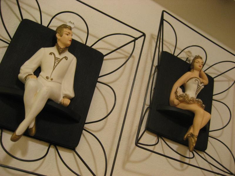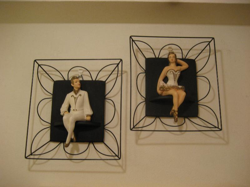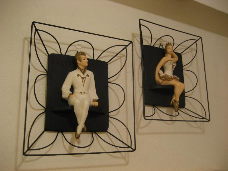 | ビンテージペアウォールデコ / 50年代 USA. 50'sのダンサーコスチューム男女ペア壁掛けです。ブラックアイアンフレームにチョークメイドのシェルフシッタータイプでバックベースと一体型。クールでGOODなビンテージデコレーションピース! |