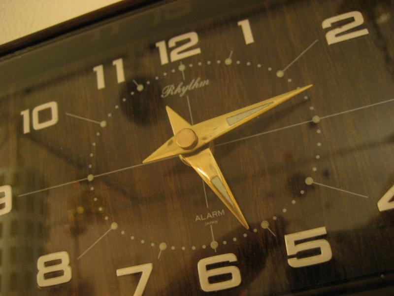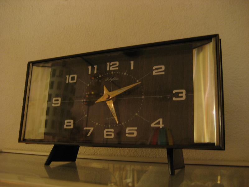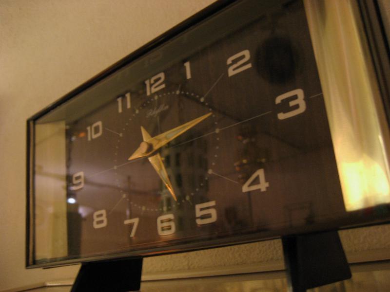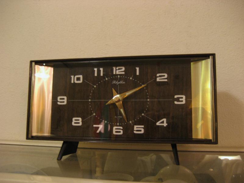 | ビンテージシェルフクロック / 50-60年代 USA. リズム社製 MADE IN JAPAN クールシェイプのダブルレッグタイプ置時計。シェルフやテーブルなどにクールでGOODなビンテージタイムピース! ムーブメントはバッテリータイプ(単3x1個使用)に交換済みですので時間は正確です。 |