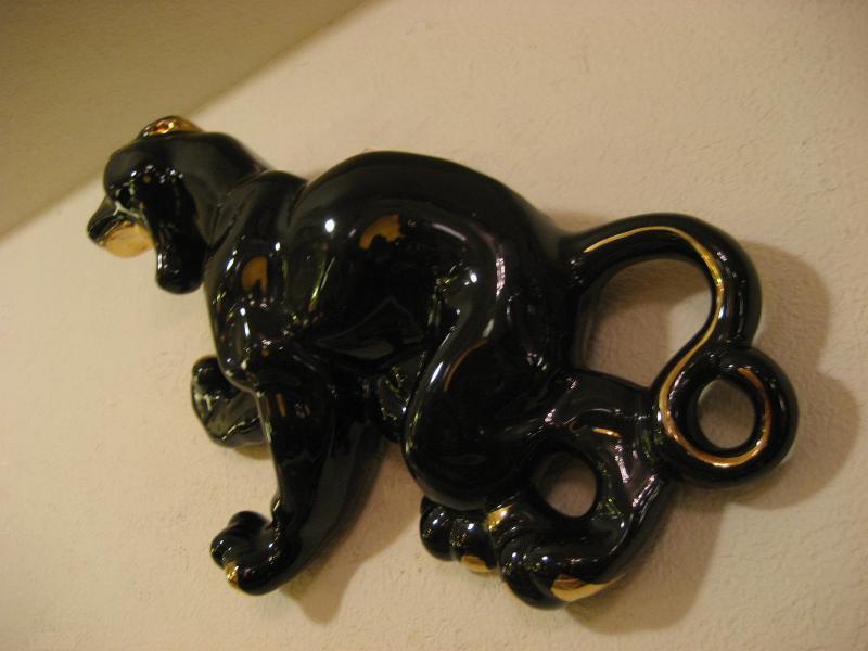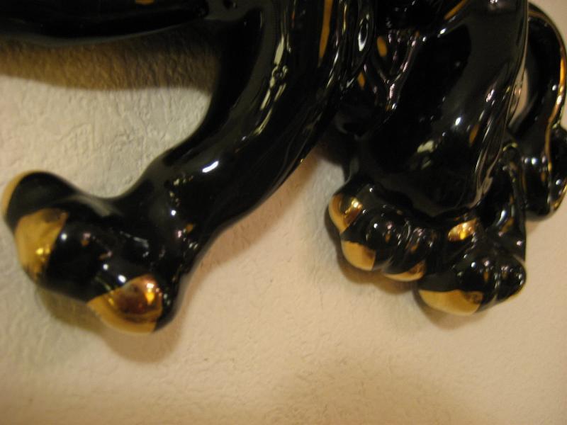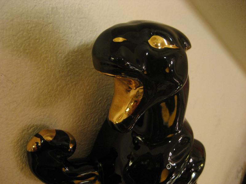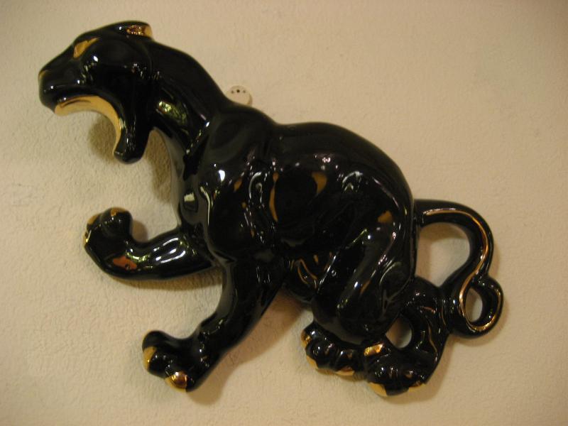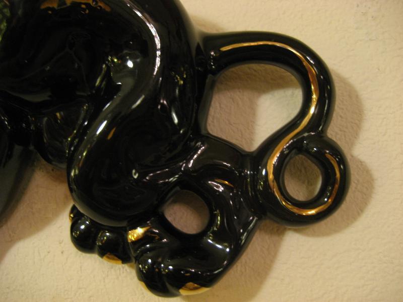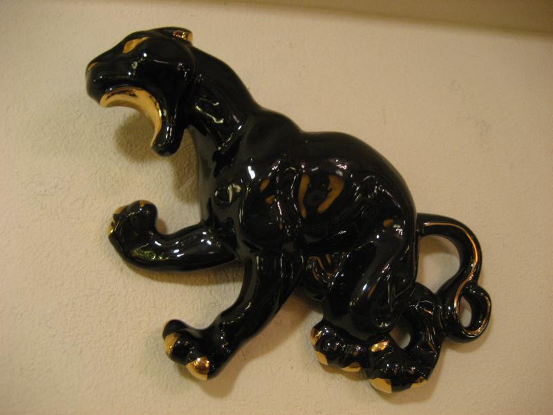 | ビンテージブラックパンサーウォールデコ / 50年代 USA 陶器製の黒豹壁掛け。ボディの背部分がプランターになっているウォールポケットタイプ。カラーはブラックにゴールドアクセント。クールフェイスでGOODなビンテージウォールデコレーションピース! |