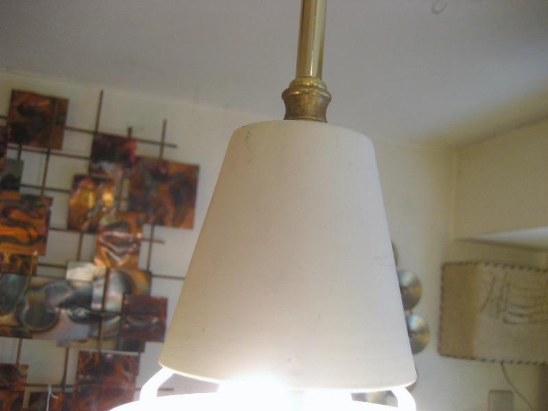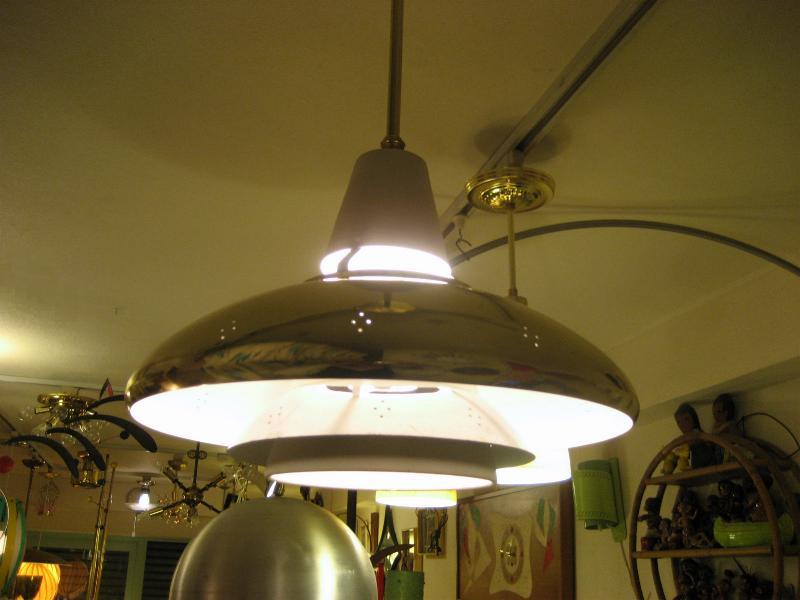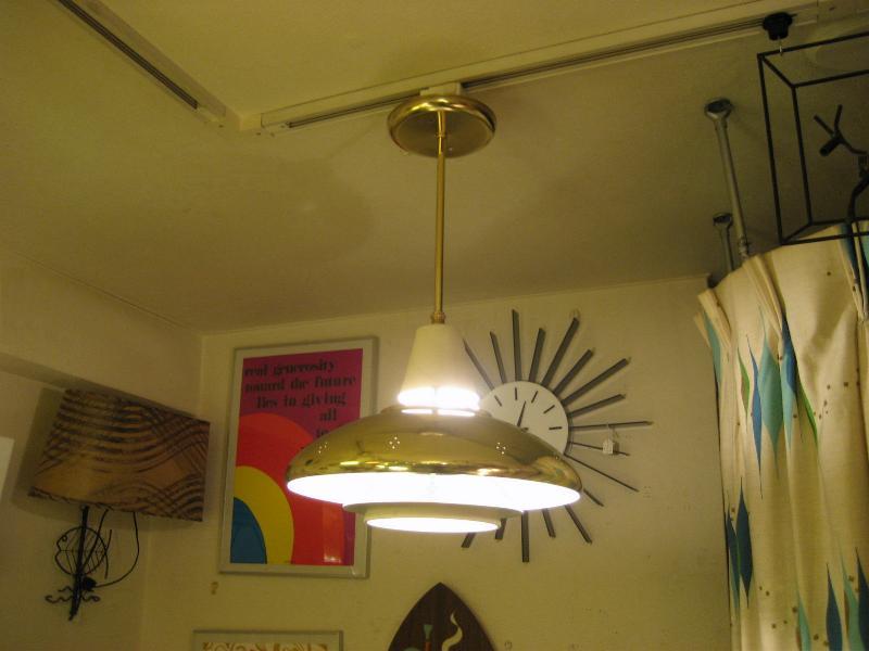 | ビンテージアトミックランプ / 50-60年代 USA UFOシェイプのアトミックシーリングランプ。スペーシーなデザインでダブルシェードタイプ。クールでGOODなミッドセンチュリーライティングピース! 電源は引っ掛けシーリングに交換済みですのですぐに設置可能です。 |