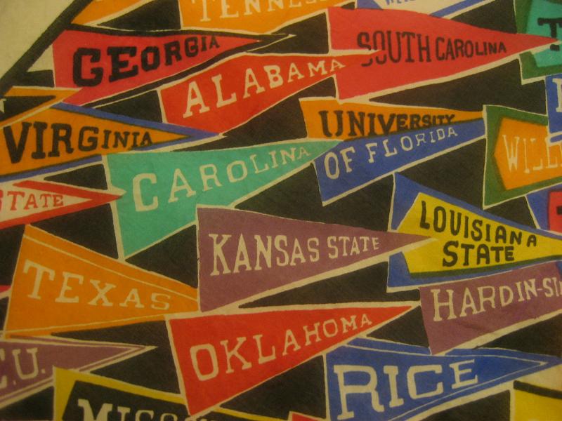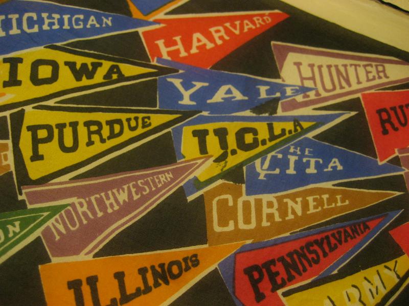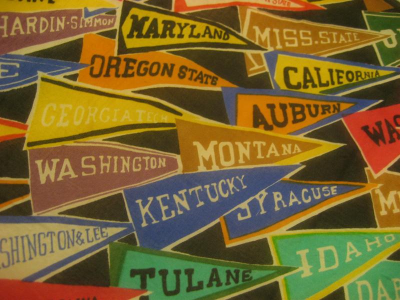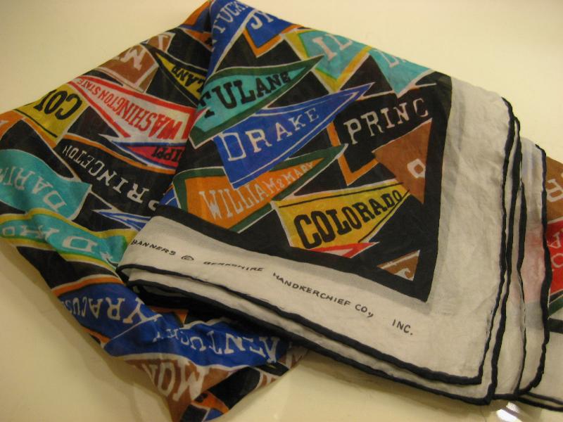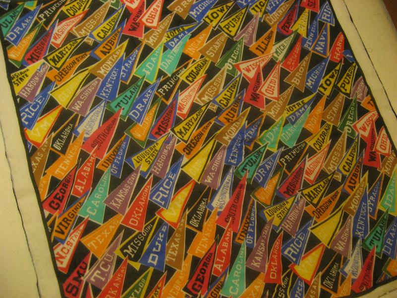 INC. USA 総柄カレッジバナープリントがクールなビンテージスカーフ。大判ですので壁掛けとしてもクールでGOODなビンテージピース! |