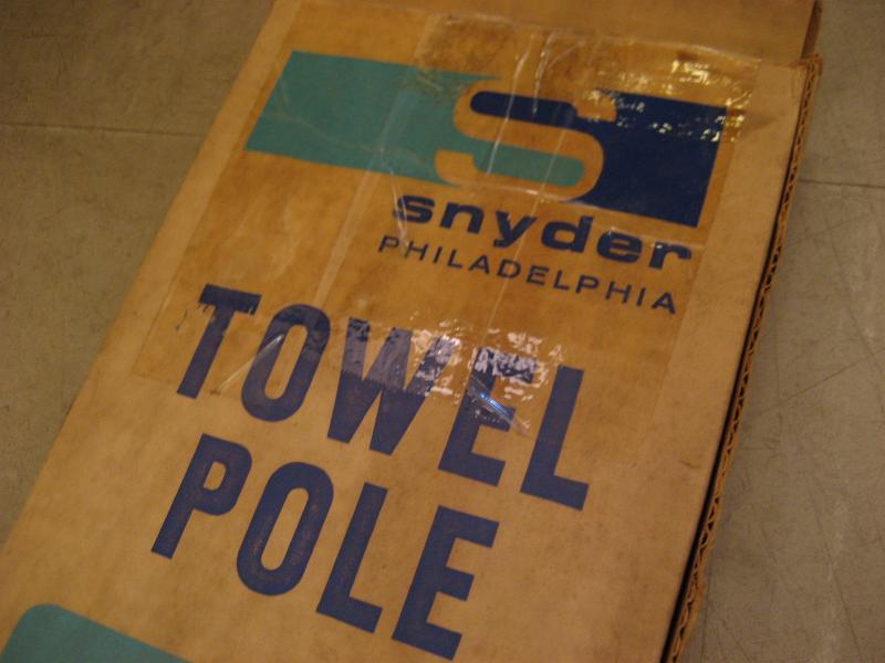 | ビンテージタオルポールラック / 60年代 SNYDER Philadelphia, USA. オリジナルBOX入り。天井と床に突っ張るスプリングロッドタイプのビンテージタオルラック。U字ハンガー2個、タオルバーが2本付いています。移動・設置も簡単。バスルームなどにクールでGOODなビンテージフロアピース! |