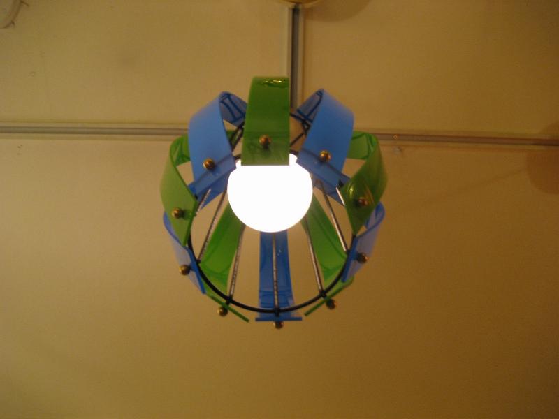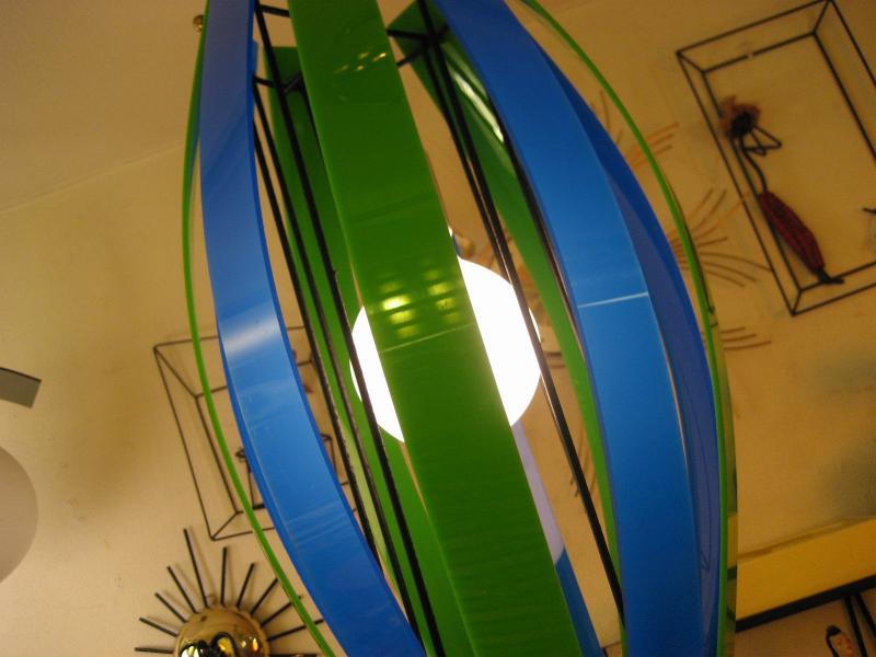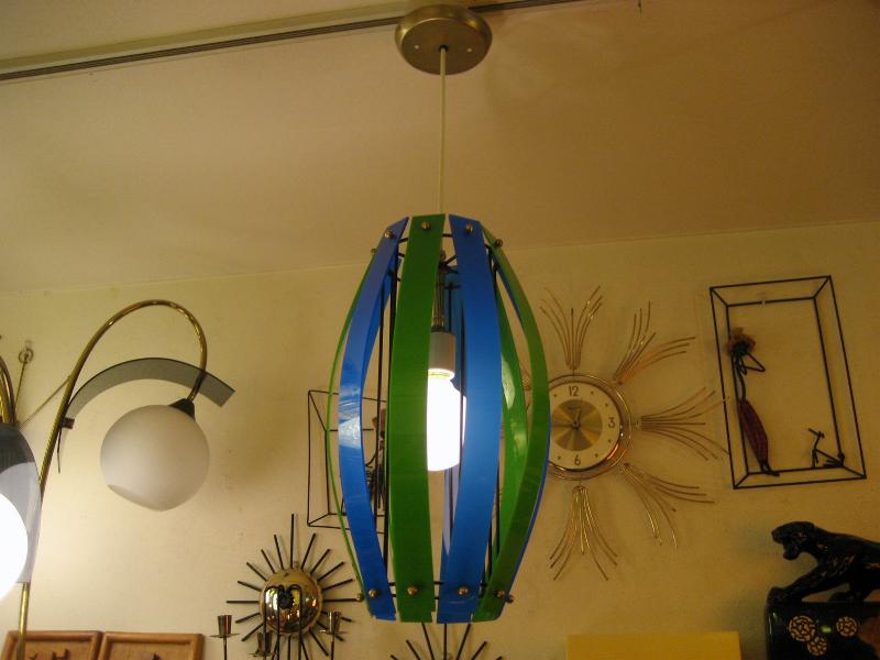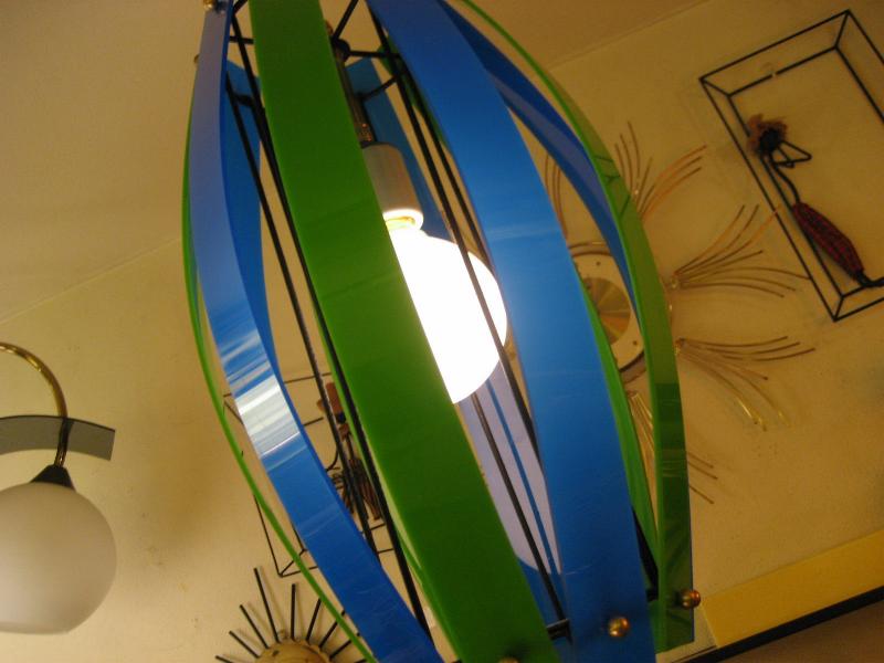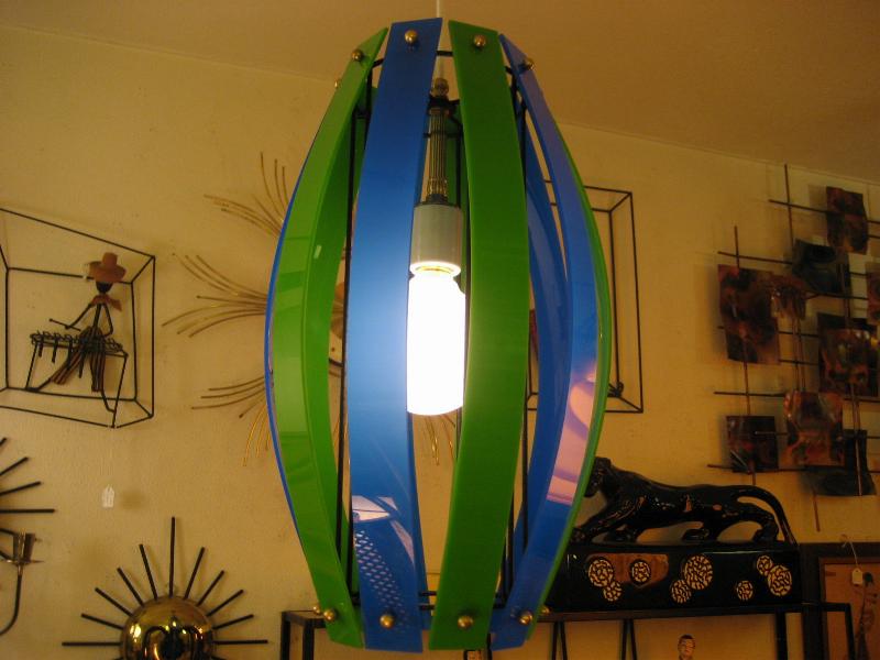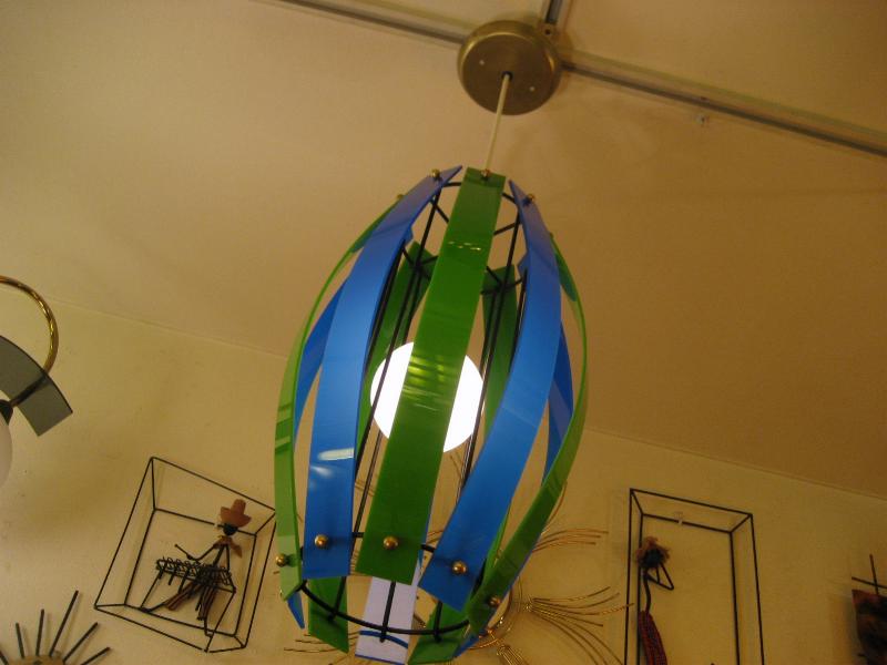 | ビンテージアトミックペンダントランプ / 50-60年代 USA. ブラックアイアンフレームにツートーンカラーアクリルプレートシェードのシーリングランプ。クールでGOODなミッドセンチュリーライティングピース! 電源は家庭用引掛けシーリングタイプに交換してありますのですぐに設置可能です。 |