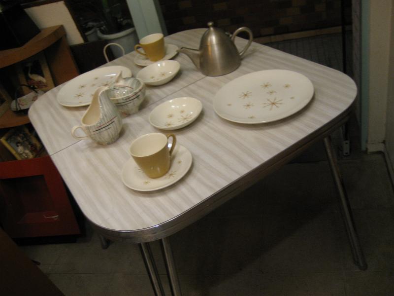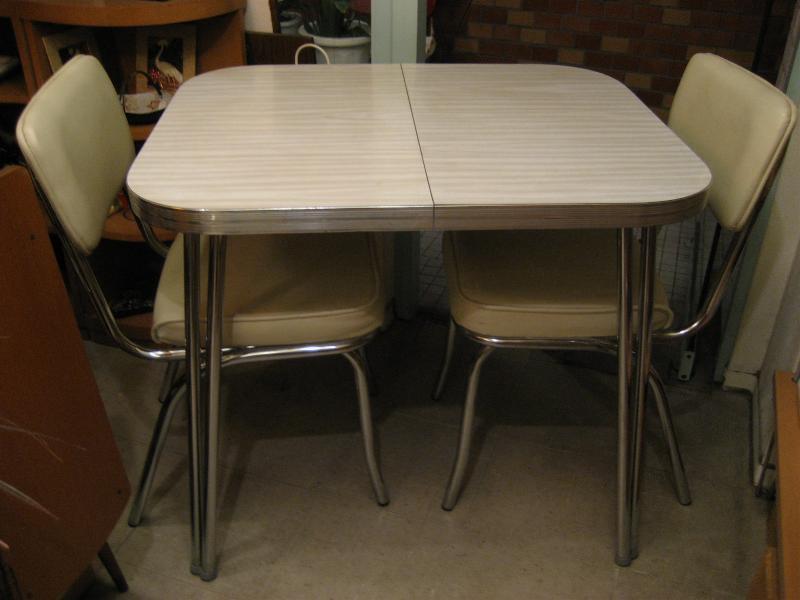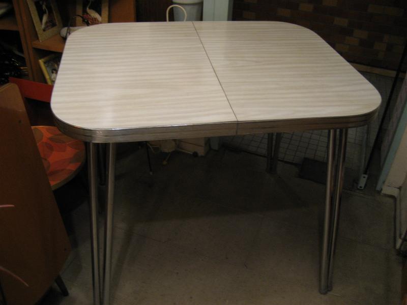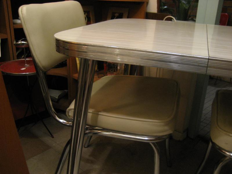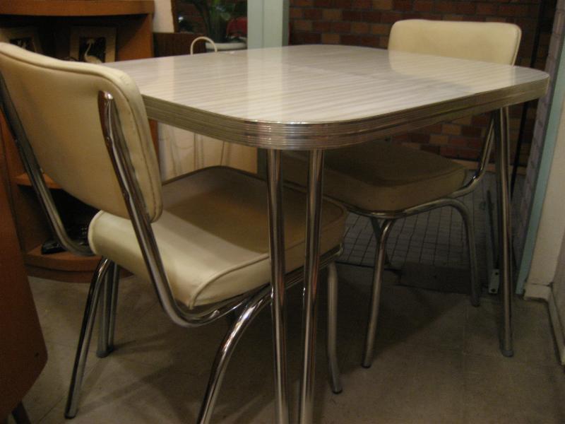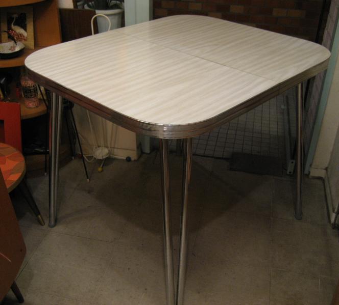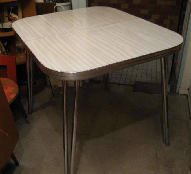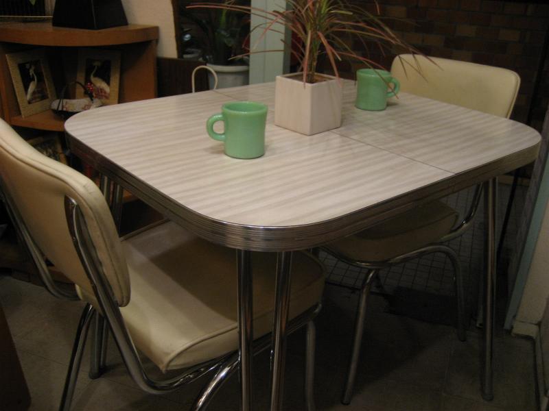 | ビンテージダイニングテーブル / 50年代 USA ライトグレー木目調化粧合板トップにクロームレッグのビンテージダイニングテーブル。サイドはメタルモール仕上げ。 別売りのダイニングチェア(FA-1921)とのセットもおススメです! 食事やティータイムが楽しくなるクールでGOODなビンテージフロアピース! |