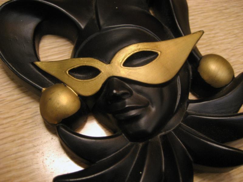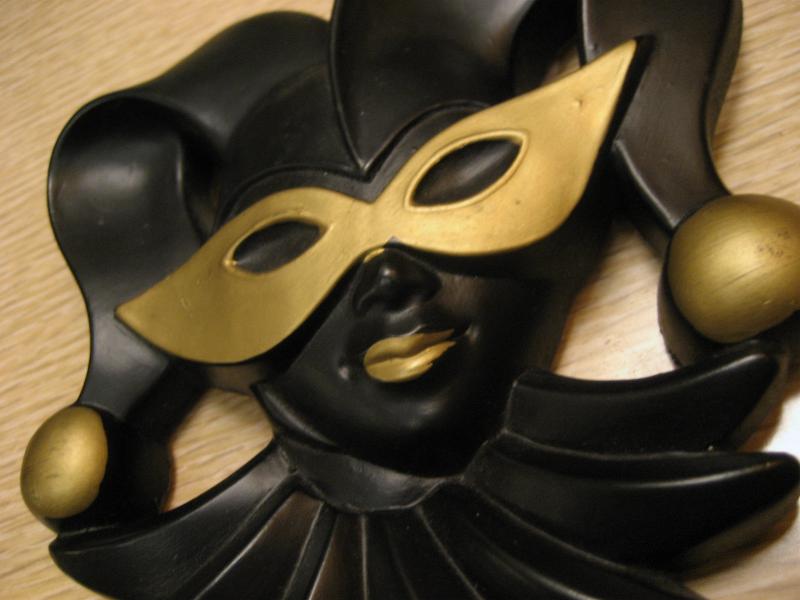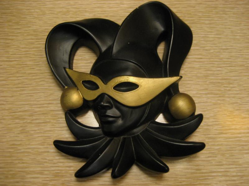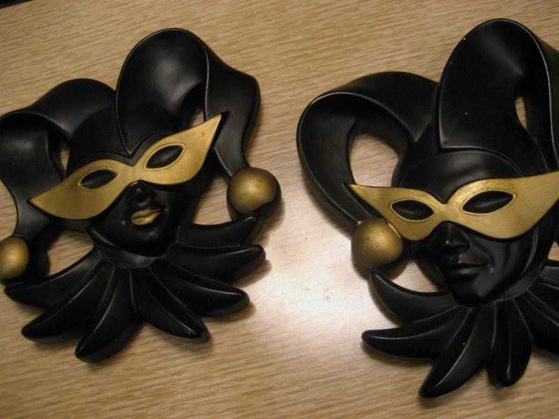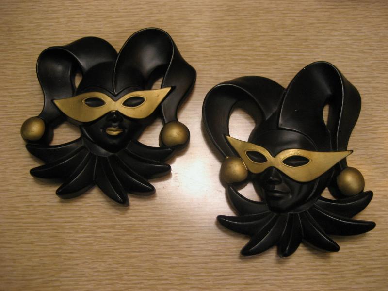 | ペアビンテージハーレクインウォールデコ / 70年代 ミラースタジオ社 USA. ©1978 チョークメイドのペアハーレクイン壁掛け。フェイスタイプの壁掛けでブラックフェイスにマスクと帽子先端にゴールドアクセント。クールでGOODなビンテージウォールデコレーションピース! |