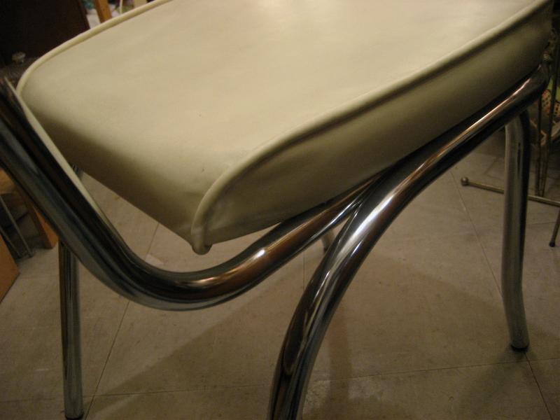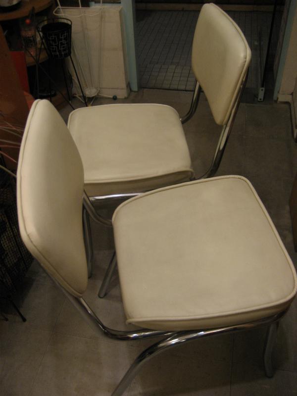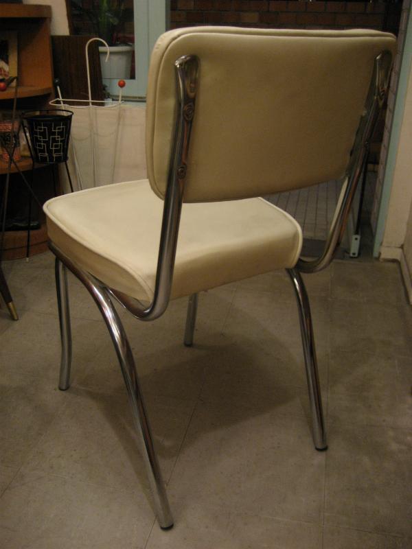 | ビンテージダイニングチェアーセット / 50年代 USA クロームフレームにオフホワイトカラーシートのビンテージダイニングチェア2客セット。シート部のクッションもまだまだ十分です。別売りのダイニングテーブル(FA-1916)とのセットがおススメ! または、お持ちのテーブルに合わせても良いのでは。。。50'sの定番的存在のダイナーライクなチェアでディナータイムが楽しくなるクールでGOODなビンテージフロアピース! |