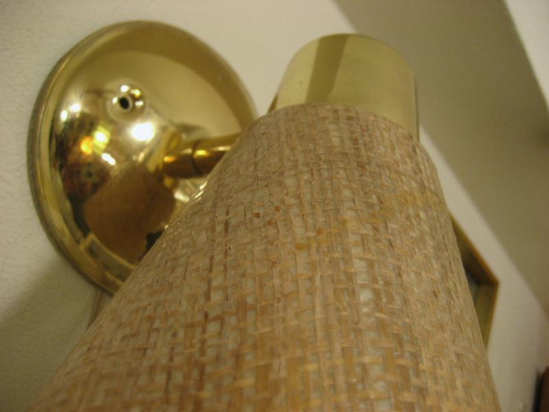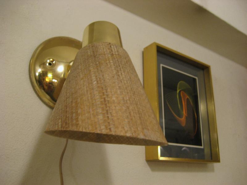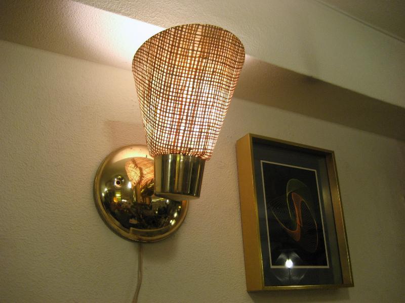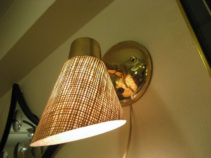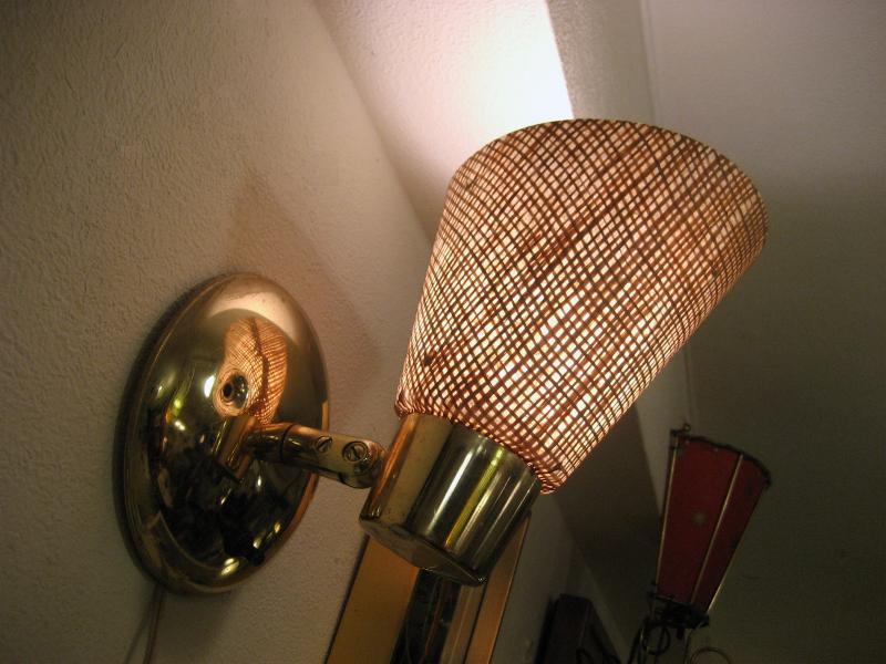 | ビンテージウォールランプ / 50-60年代 USA ファイバーグラスシェードにゴールドブラスのビンテージ壁掛けスポットランプ。シェード方向は好みに合わせて360度可動しますので、いろいろなライティングポジションに対応OK。クールでGOODなビンテージライティングピース! 電源は家庭用コンセント対応でスイッチはウォールマウントベースに付いていてロータリー式(ON/OFF)です。 |
