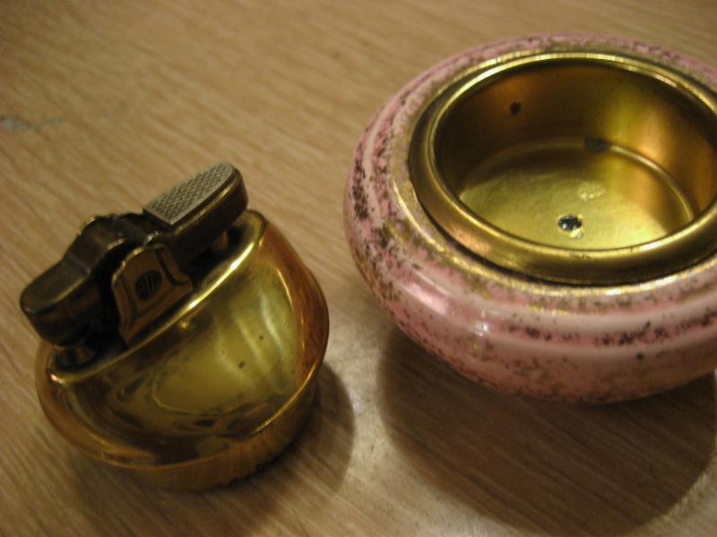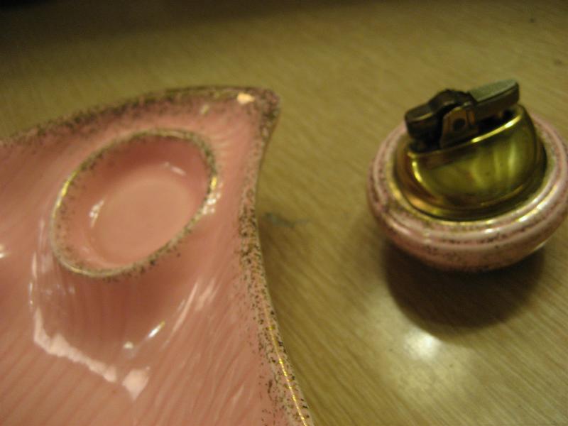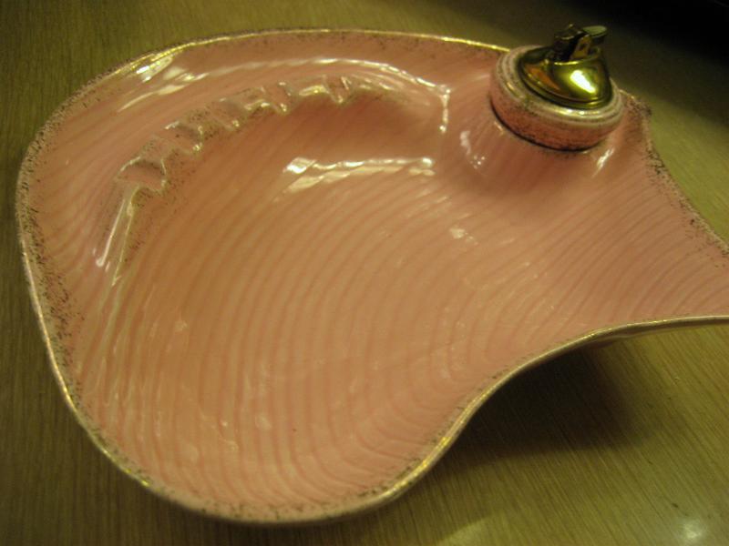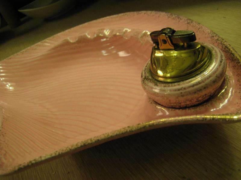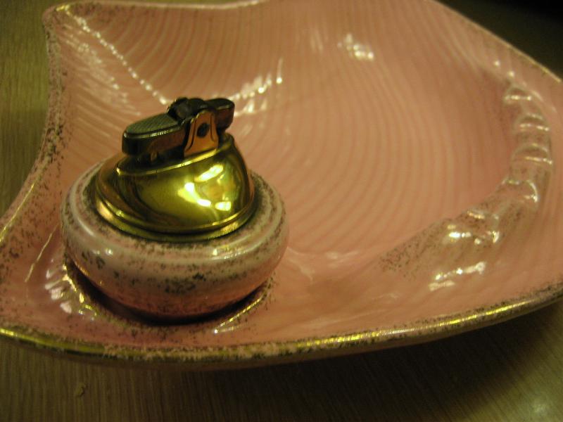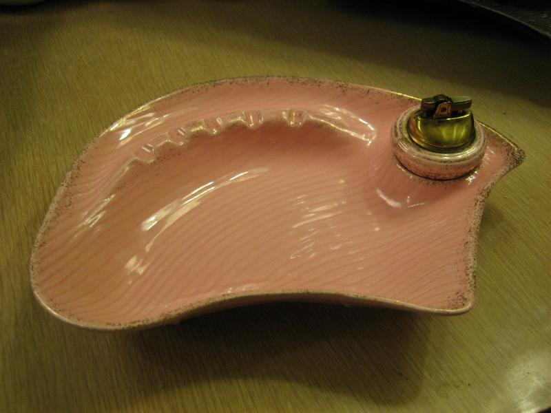| ビンテージライター付アッシュトレイ / 50年代 USA 陶器製のブーメランシェイプ灰皿とライターセット。灰皿に直接セットするタイプでライターカバーも灰皿と同様の陶器メイド。クールでGOODなビンテージテーブルピース! ディスプレイ性も高いのでオブジェとしても! |