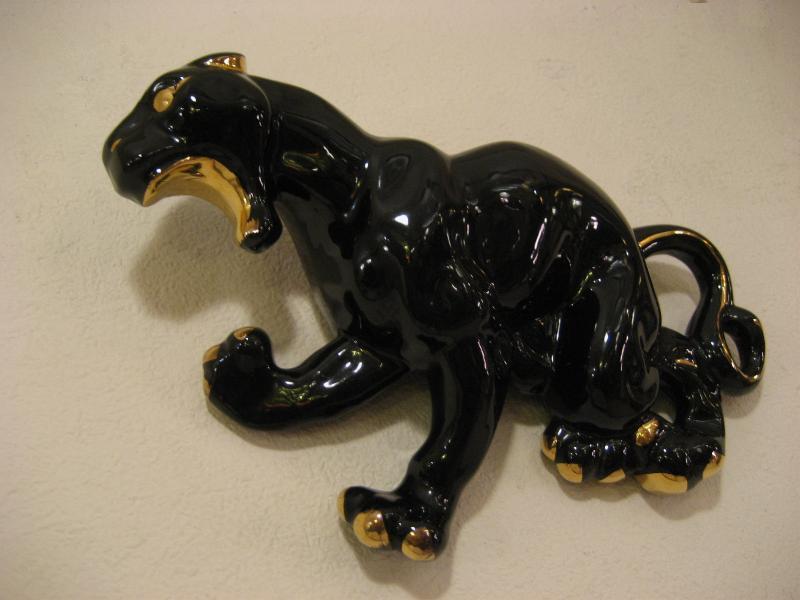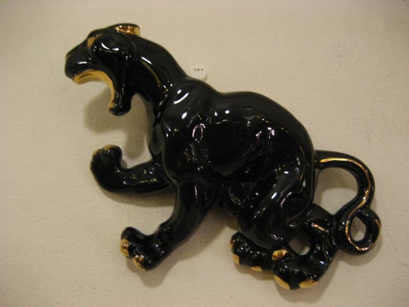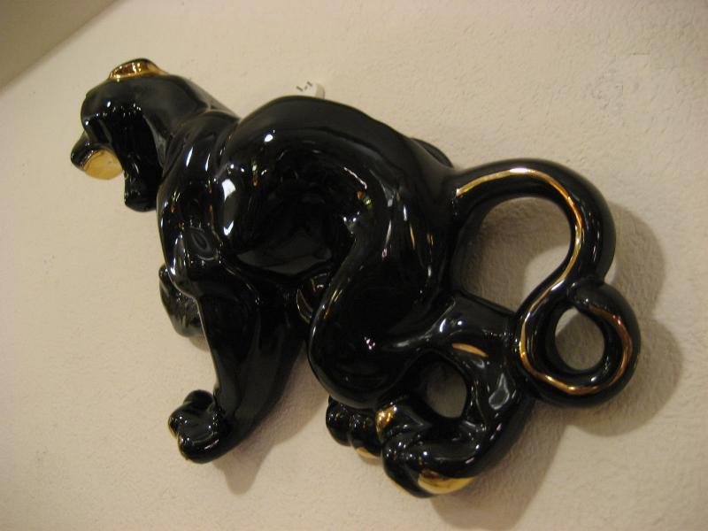 | ビンテージブラックパンサーウォールデコ / 50年代 USA 陶器製の黒豹壁掛け。ボディの背部分がプランターになっているウォールポケットタイプ。カラーはブラックにゴールドアクセント。クールフェイスのGOODなビンテージウォールデコレーションピース! |