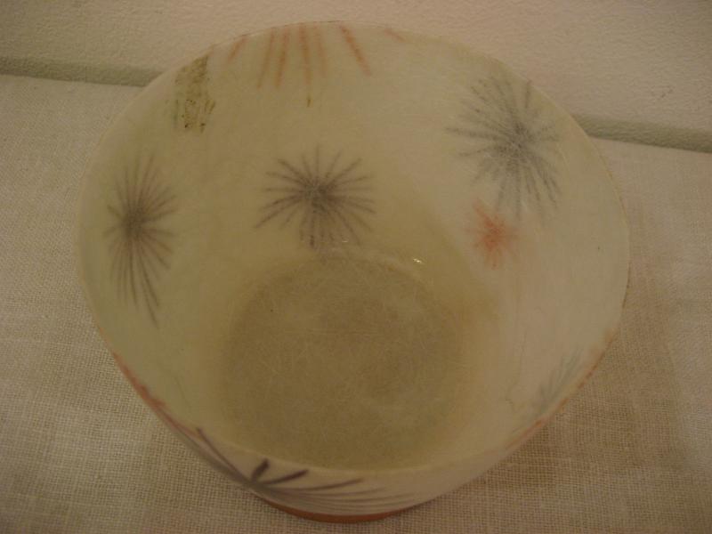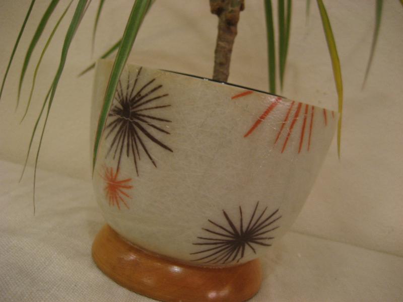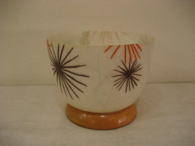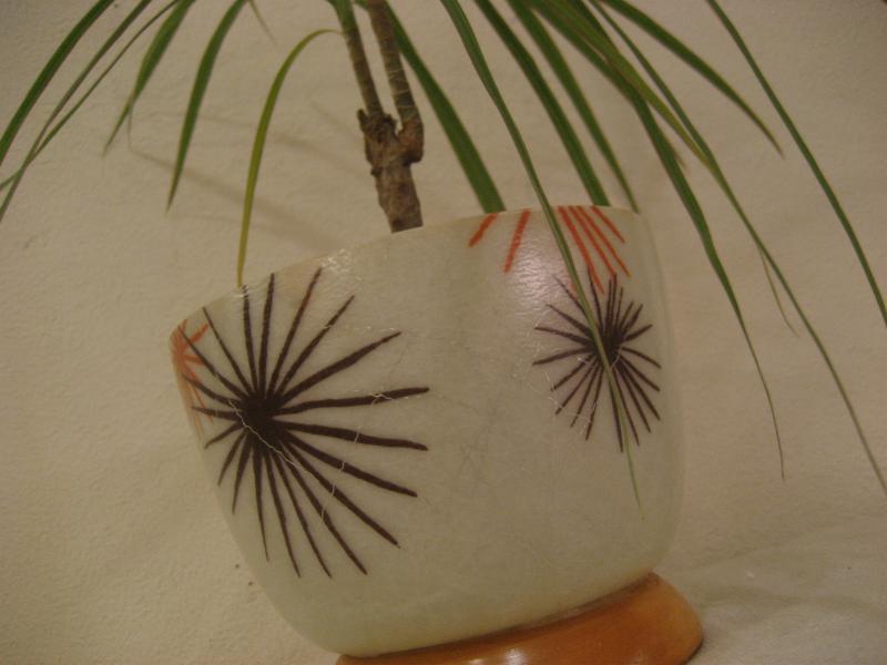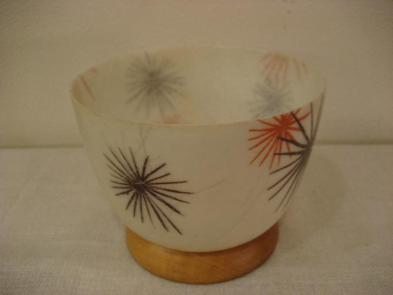 USA. アトミックなスターバーストプリントのファイバーグラスメイドボウル。ベースはウッドメイド。プランターポットやテーブルトップで物入れなどに使っても良いのでは。。。 クールでGOODなビンテージピース! |