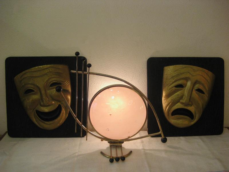 USA. 50'sど真ん中のツーフェイス壁掛けペア。プラスチックメイドでブラックカラーベースに3D立体加工されたゴールドカラーの泣き笑い。壁掛けは裏面にフックホールが開いています。クールでGOODなビンテージウォールピース! |