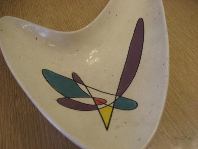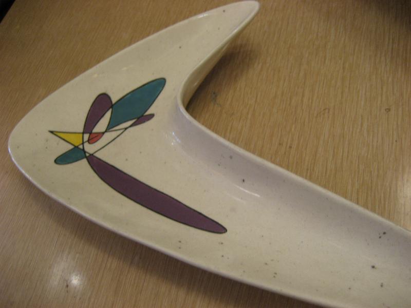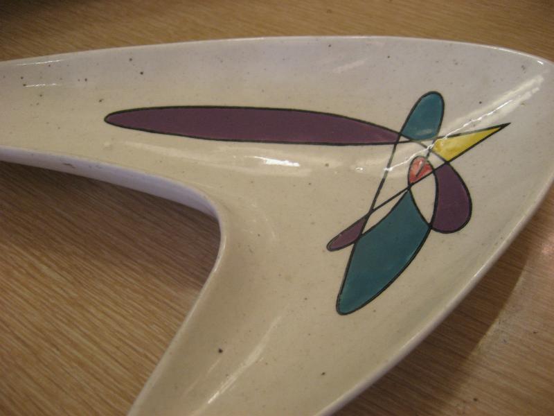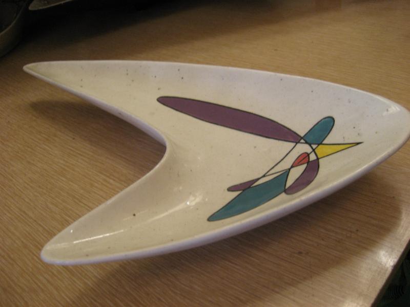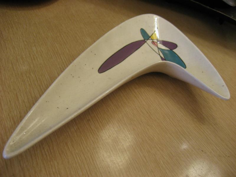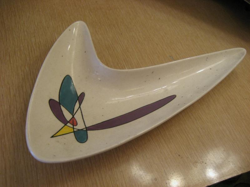 | ビンテージブーメランディッシュ / 50年代 メトロックス USA. カリフォルニア陶器の代表的なメーカー "Metlox社" の "Poppytrailシリーズ" で、レアなブーメランシェイプディッシュ。灰皿や小物入れなどやテーブルトップディスプレイにクールでGOODなビンテージ50'sコレクティブルピース! |