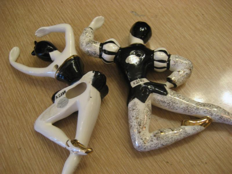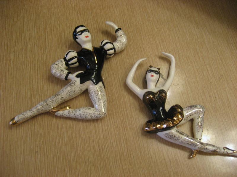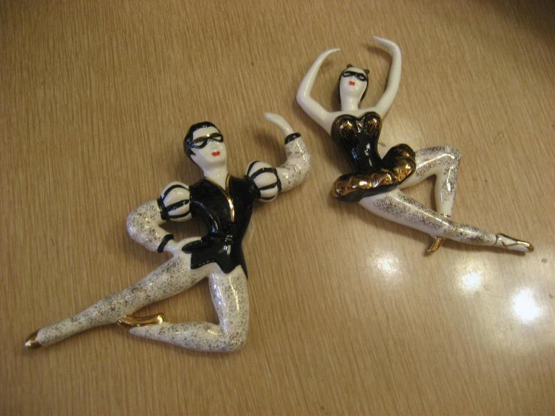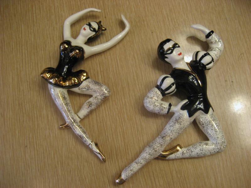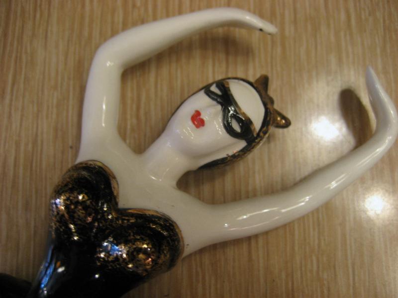| ペアビンテージハーレクインウォールデコ / 50年代 Napco, USA. 陶器製のペアハーレクインダンサー壁掛け。ブラックコスチュームにゴールドアクセントデコ、ブラックマスク。クールでGOODなビンテージ50'sコレクティブルピース! |