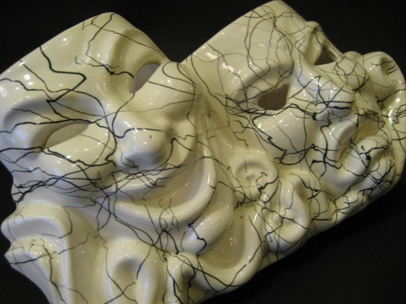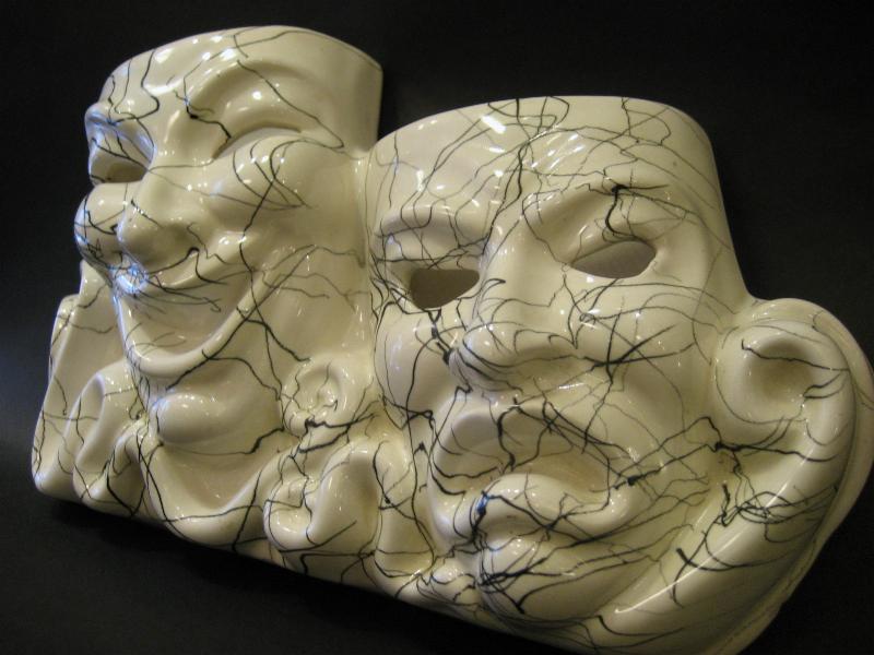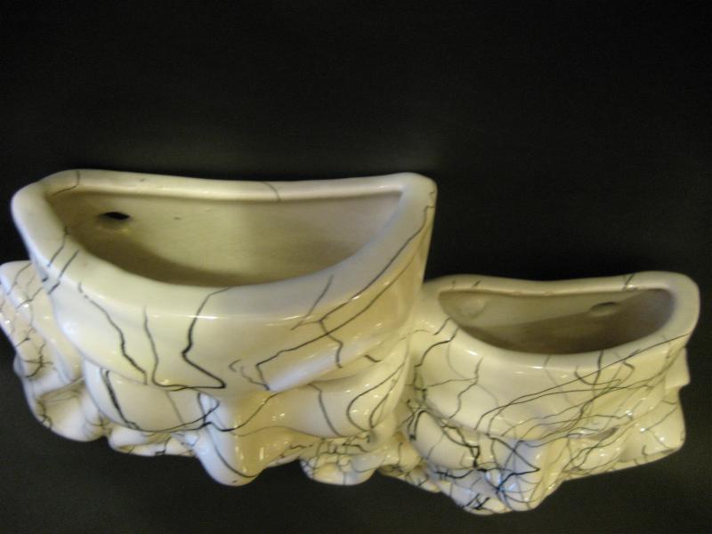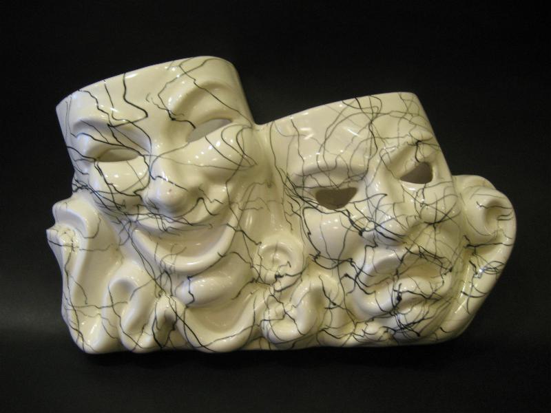 | ビンテージツーフェイスウォールデコ / 50年代 USA. 陶器製泣き笑いのビンテージ壁掛けポケット。ウォールプランタータイプでホワイトフェイスベースにブラックドレーピングアクセントがクールでGOODなビンテージウォールデコレーションピース! |