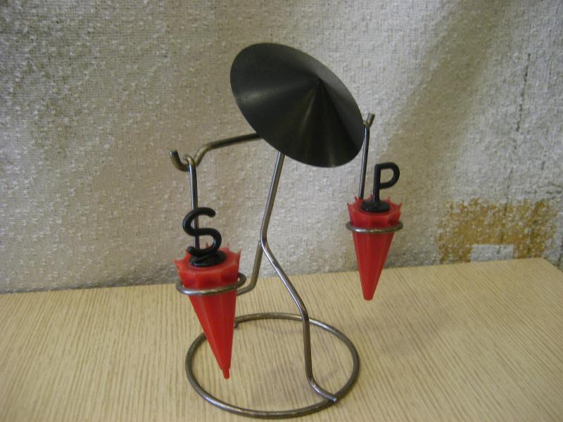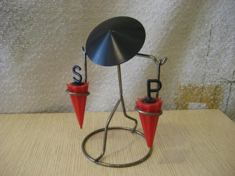 | ビンテージソルト&ペッパーシェーカーセット / 50年代 USA. オリエンタルなイメージのソルト&ペッパーシェーカーセット。それぞれパラソルシェイプのシェーカーになっています。クールでGOODなビンテージテーブルピース! ディスプレイにも。。。 |