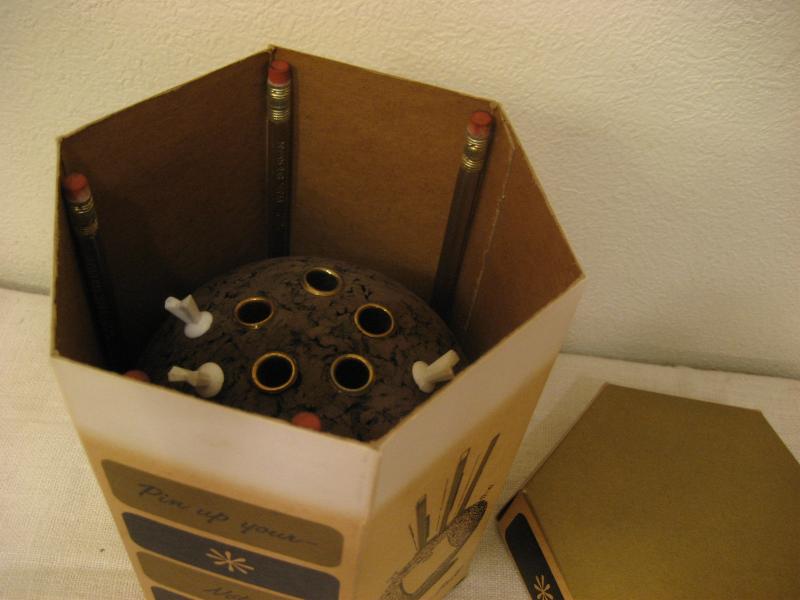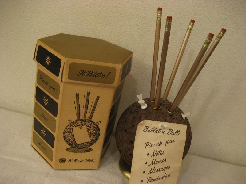 | ビンテージデスクステーショナリー / 50-60年代 K&M INC. MADE IN USA コルクメイドのボールシェイプペンスタンド&メモストック。未使用のペンシル(鉛筆)とメモ用ピンがセットになってオリジナルボックス入り。レトロモダンでGOODなビンテージデスクピース! |
