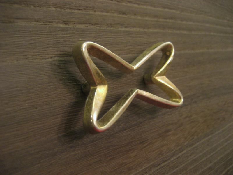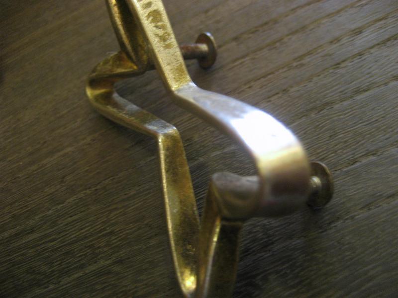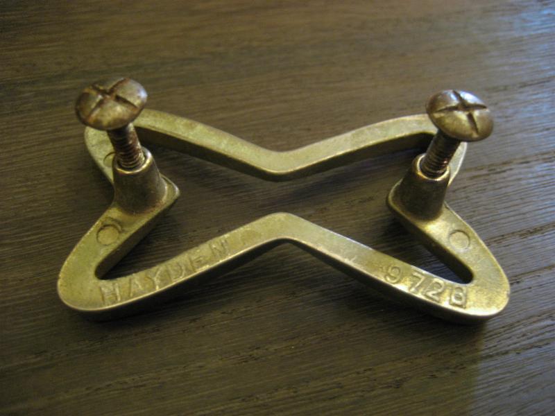 | ビンテージアトミックファニチャーパーツ / 50-60年代 HAYDEN #9726, USA アトミックなブーメランシェイプのファニチャーハンドル(引き手)。お持ちの家具のハンドルから換えたり、オリジナル家具に使用したり、またはまったく別な用途などなど。。。いろいろ使えるクールでGOODなビンテージピース! |
