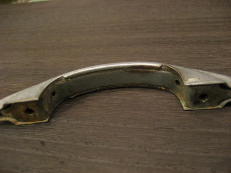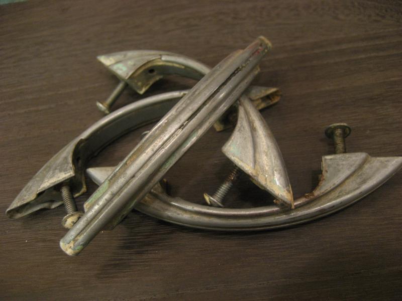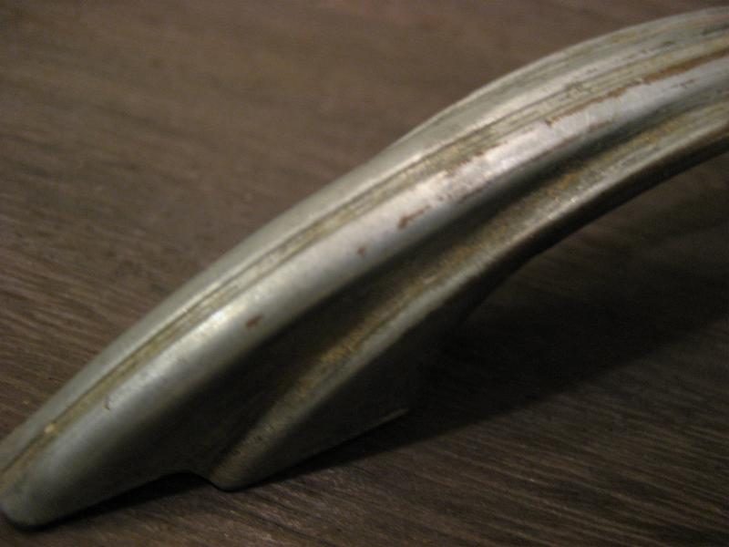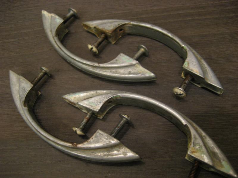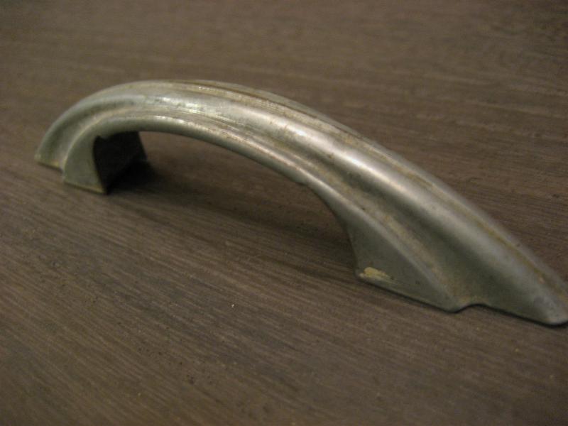 | ビンテージアトミックファニチャーパーツ / 50年代 USA インダストリアルなスチールメイドのブーメランシェイプキャビネットハンドル(引き手)。お持ちの家具のハンドルから換えたり、オリジナル家具に使用したり、またはまったく別な用途などなど。。。いろいろ使えるクールでGOODなビンテージピース! |