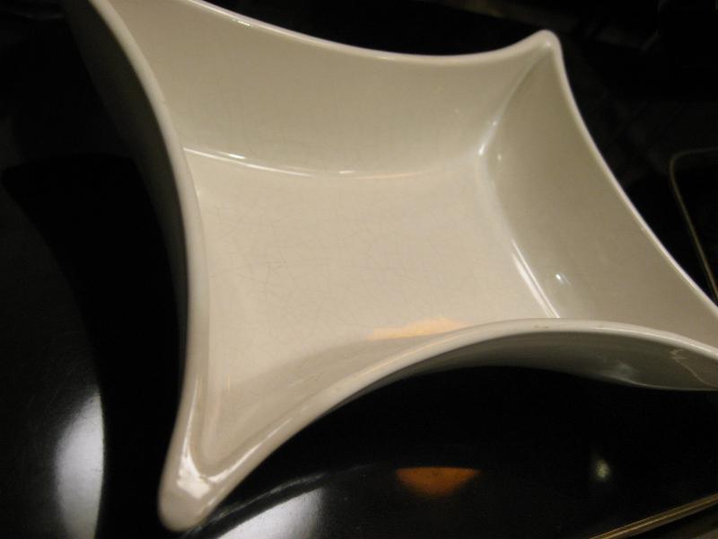 #973, USA. カリフォルニア陶器の代表的なメーカー "MIRAMAR" のアトミックスクエアシェイプのディッシュポット。料理やスナックはもちろん、プランターや灰皿、小物入れなどテーブルトップディスプレイにもクールでGOODなビンテージテーブルピース! |