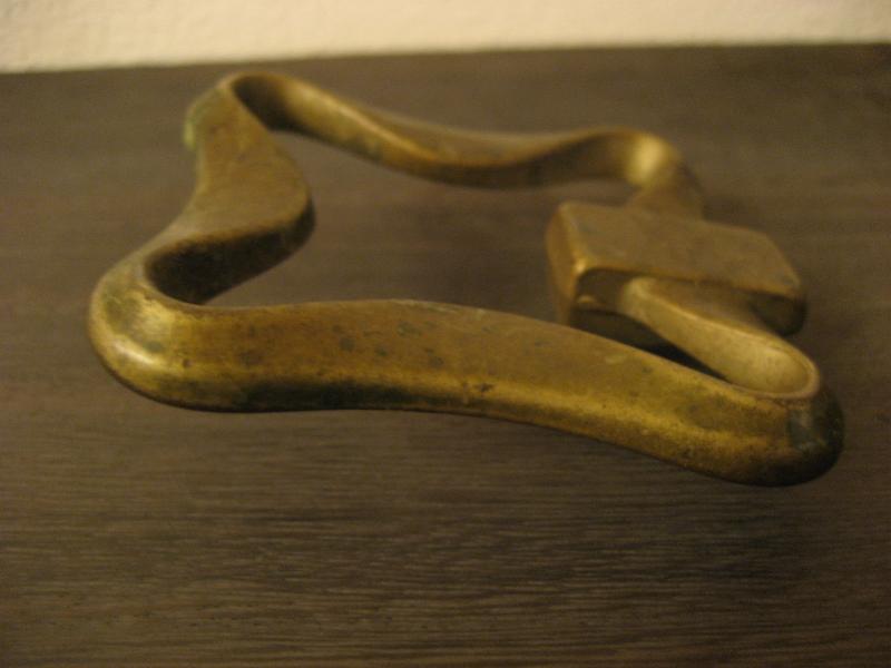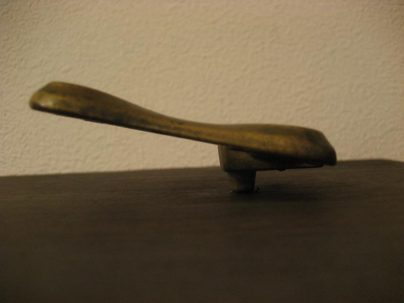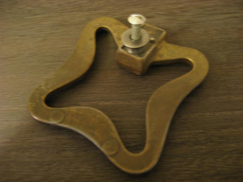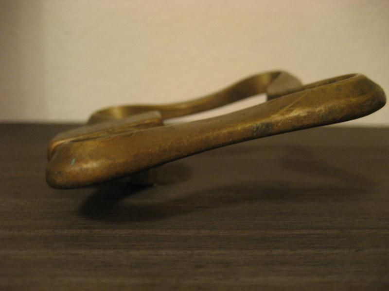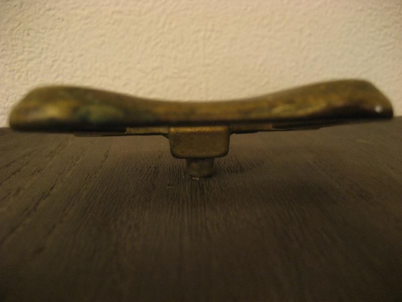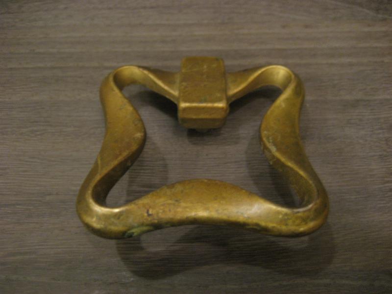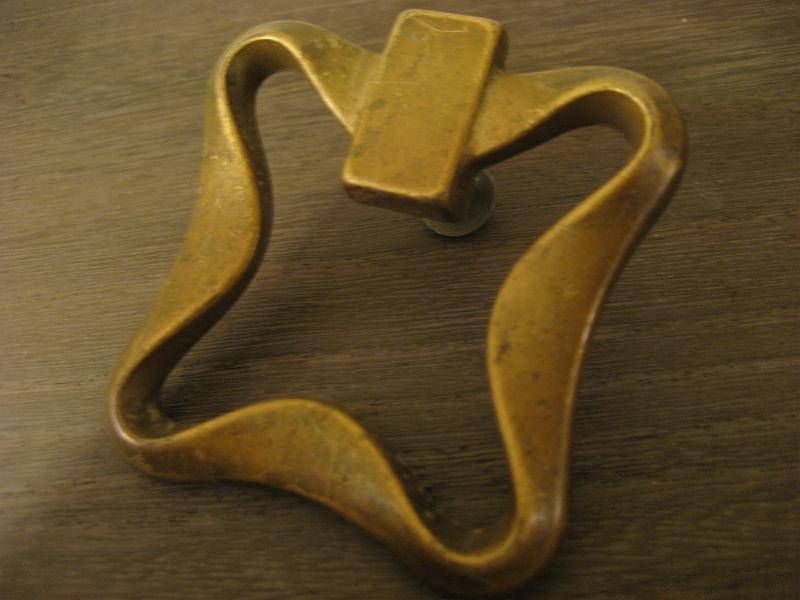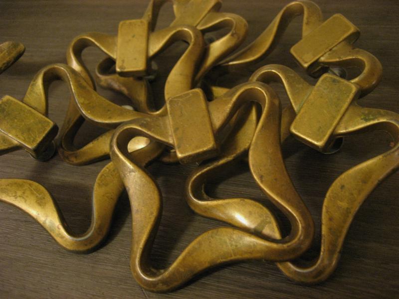 | ビンテージアトミックファニチャーパーツ / 50-60年代 USA ブラスメイドのアトミックなブーメランシェイプファニチャーハンドル(引き手)。シングルスクリュー(1本ネジ)タイプですので用途も幅広く、お持ちの家具やキャビネットなどのハンドルから換えたり、オリジナル家具に使用したり、またはまったく別な用途などなど。。。いろいろ使えるクールでGOODなビンテージピース! |