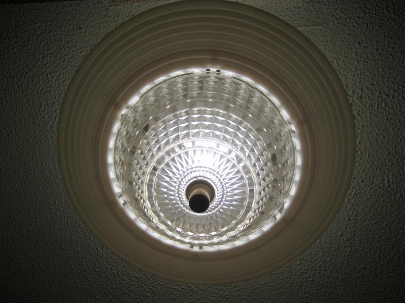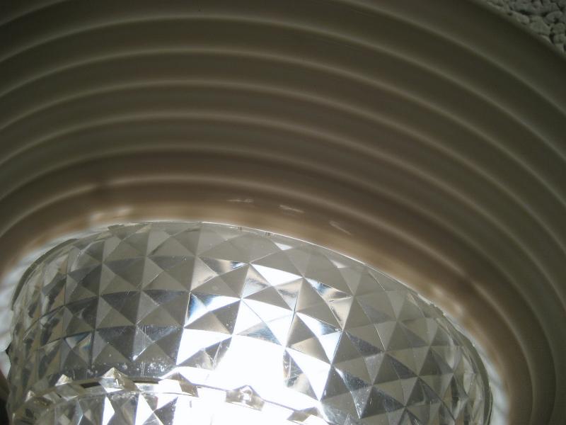 MFG CORP. USA 天井シーリングバルブに付けるランプシェード。アクリルメイドでシンプルなオフホワイトとクリアカラーのコンビネーション。アトミックなUFOシェイプのクールなデザイン。写真のいちばん下のように電球(バルブ)にクリップオンするだけのイージー&クイック設置でシーリングランプにチェンジ! キッチン、バスルームやトイレ、玄関などなど。。。お家のどこかに電球バルブのみのところがきっとあるはず。。。そんなスポットにおススメです。アクリルカット面の光の屈折反射で独特な明かりを再現しています。クールでGOODなビンテージライティングピース! |