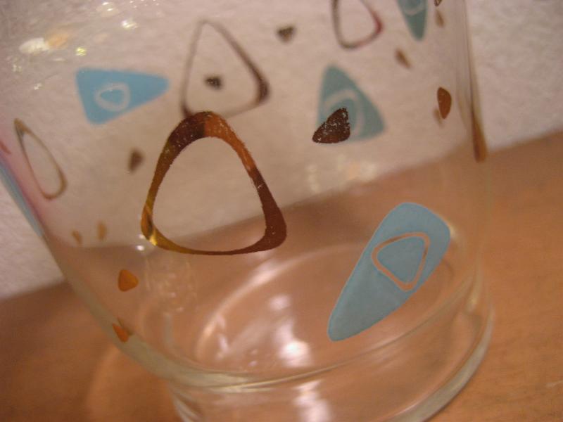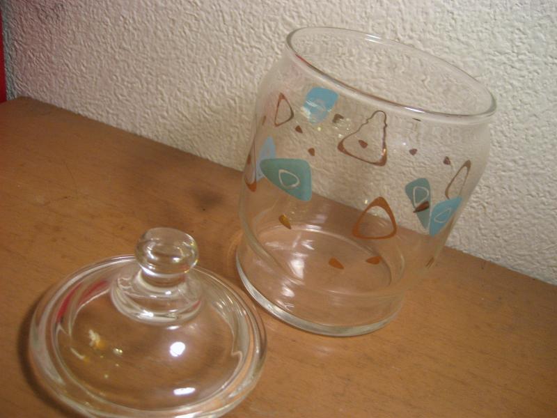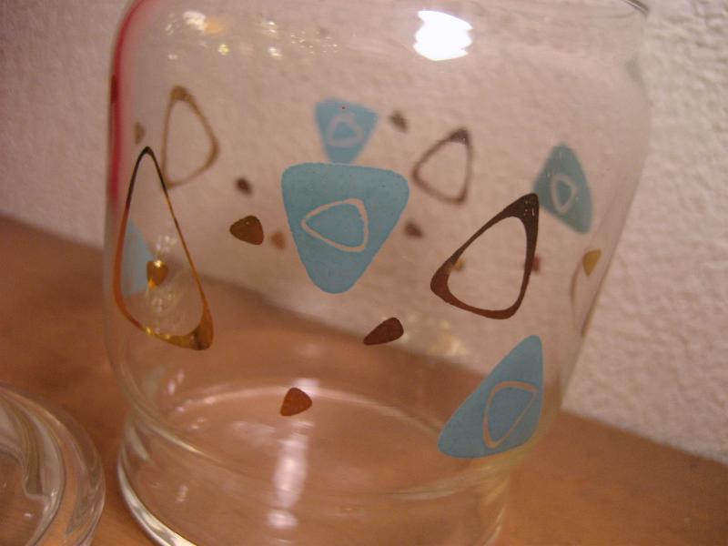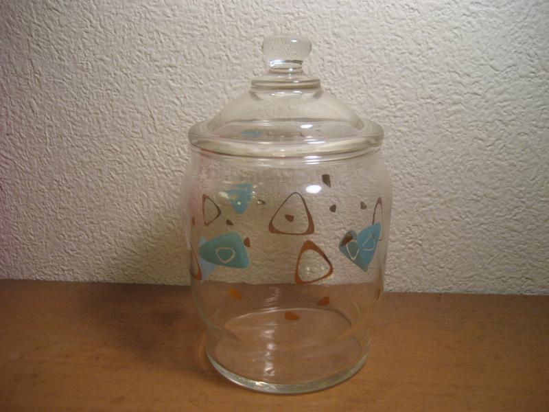 | ビンテージアトミックグラスポット / 50年代 USA アトミックなアメーバブーメランプリントのビンテージガラスキャニスター。同じプリントデザインのグラスをお持ちの方も多いのではないでしょうか。。。 小物入れやディスプレイにもクールでGOODなビンテージテーブルピース! |