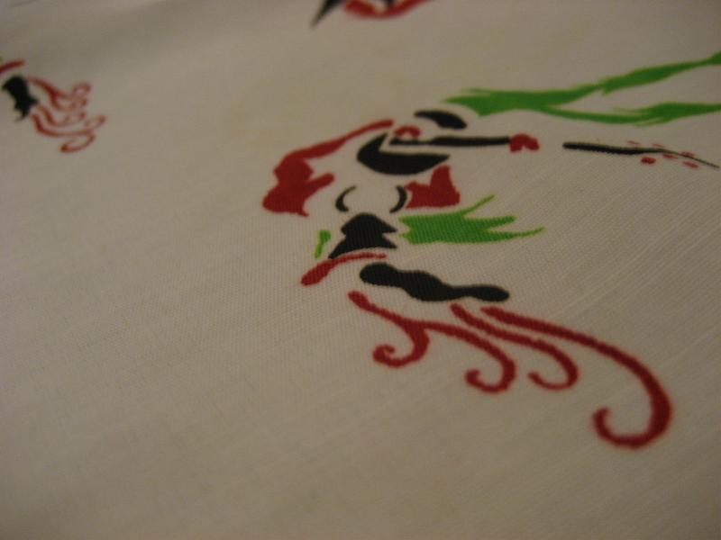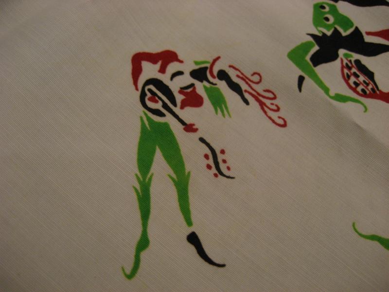 | ビンテージハーレクインダンサーファブリック / 50-60年代 USA. ハーレクインダンサーとミュージシャンプリントのレアなビンテージファブリック。素材はレーヨンと思われます。クッションやパネルなどの加工、敷物などにクールでGOODなビンテージコレクティブルピース! |