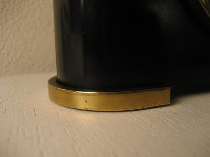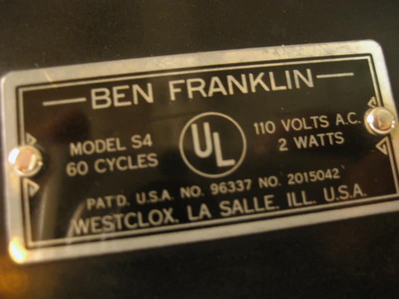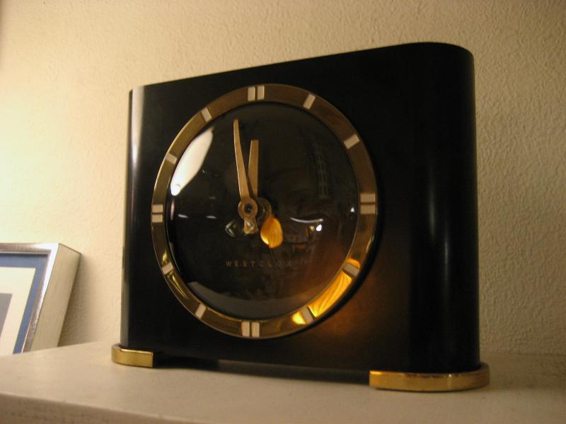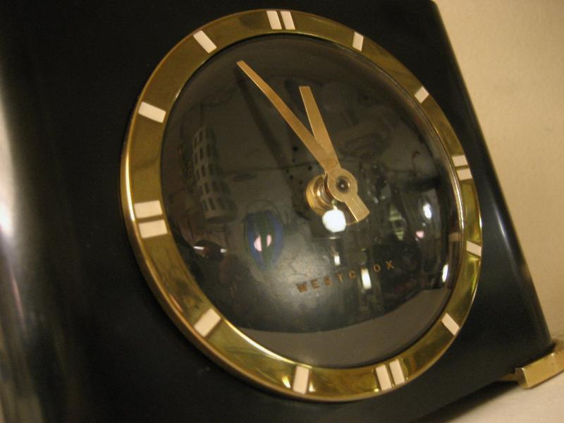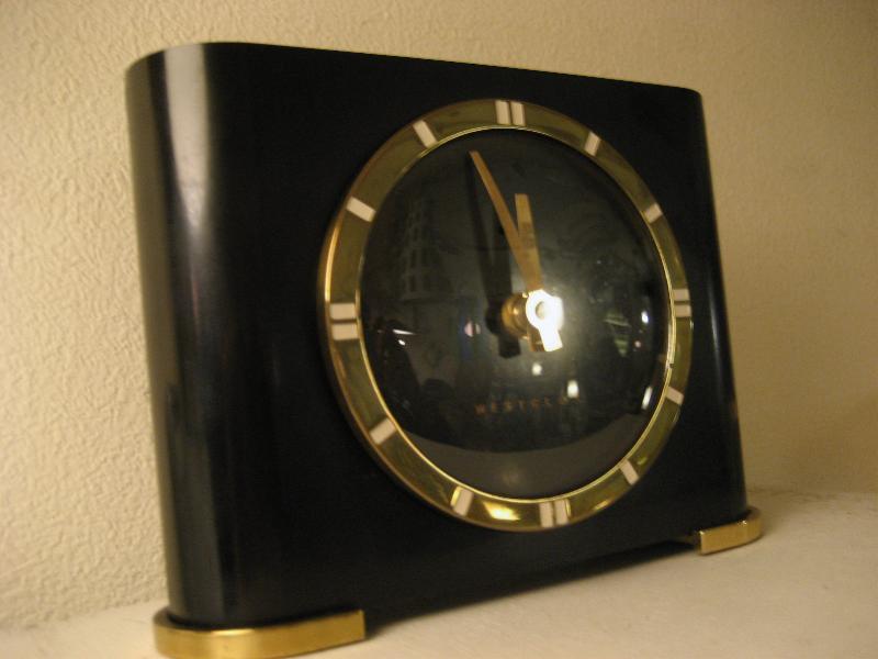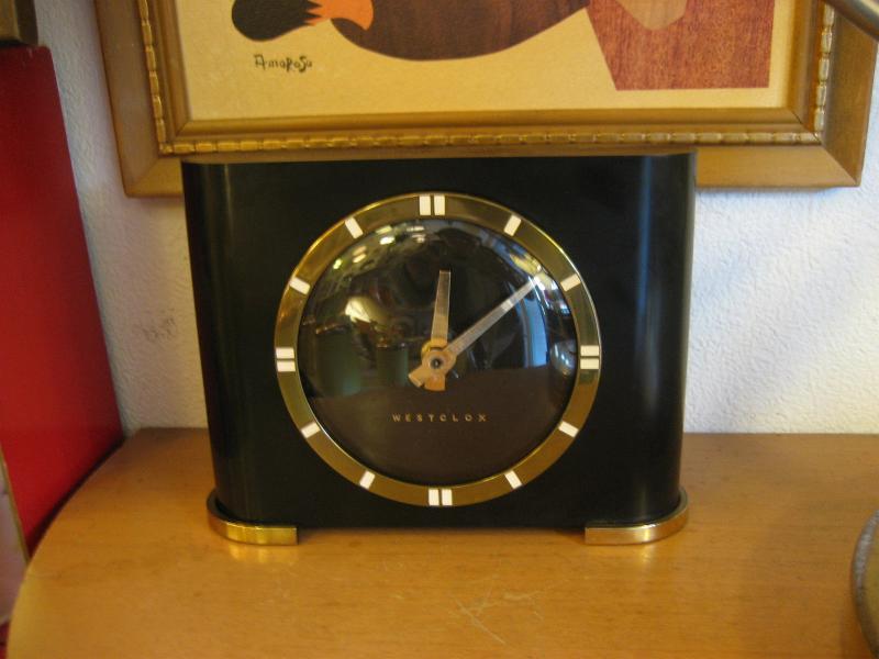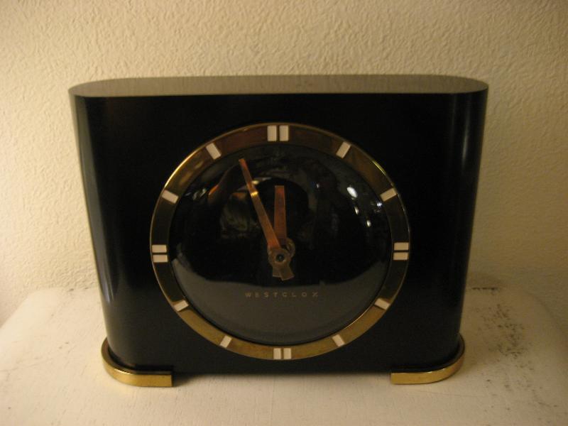 MADE IN USA WESTCLOXのビンテージ置時計。"Ben Franklin"という名を付けられたウエストクロックスの置時計の中でも比較的初期(1935-1939)のレアな時計。プラスチックメイドボディ&ケースでブラック文字盤&ゴールドハンド。ブラスレッグ。クールでGOODなビンテージタイムピース! ムーブメントはバッテリータイプ(単3x1個使用)に交換済みですので時間は正確です。 |