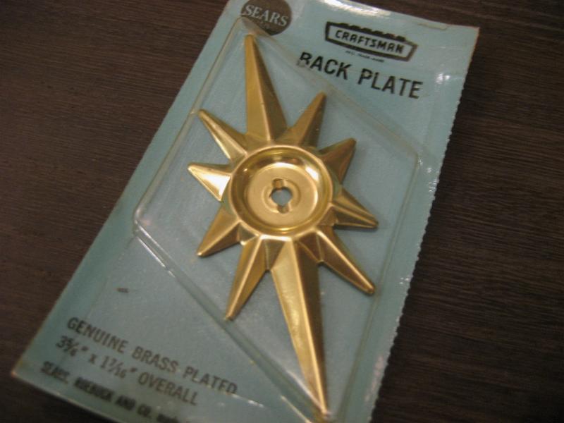 | ビンテージアトミックファニチャーパーツ / 50-60年代 "CRAFTSMAN" SEARS, USA デッドストック レアなスターバーストシェイプのバックプレートとプルノブ(ツマミ)のマッチングセット。しかもデッド! お持ちの家具やキャビネットなどのハンドルから換えたり、オリジナル家具に使用したり、またはまったく別な用途などなど。。。いろいろ使えるクールでGOODなビンテージピース! |