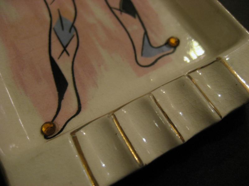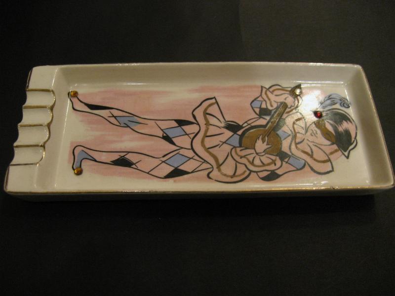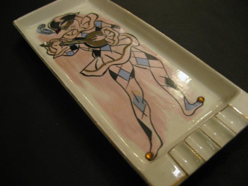 USA. ハーレクインミュージシャンプリントのビンテージ灰皿。アクセントにラインストンを使用したディスプレイ性の高いアイテム。クールでGOODなビンテージテーブルピース! ■KREISS & COMPANY アメリカのセラミックメーカーで1940年代創業。"KREISS & COMPANY"という社名になったのは1951年から。 |