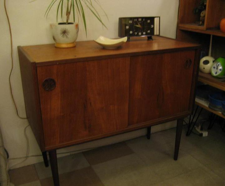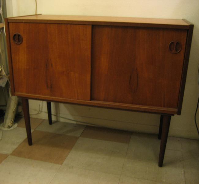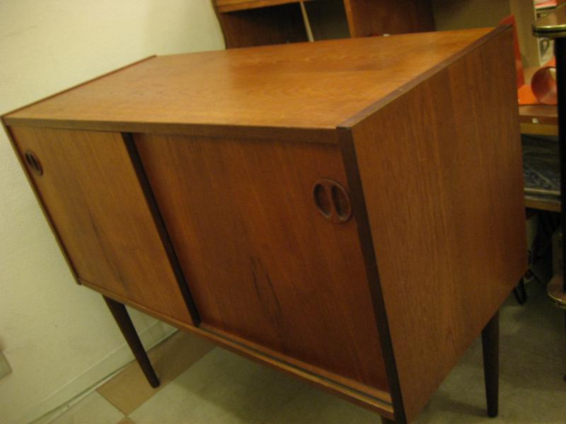 | ビンテージフロアキャビネット / 50-60年代 USA シンプルでモダンな4本レッグタイプのビンテージキャビネット。マテリアルはおそらくチーク材。スライド扉で右側はインサイドシェルフになっています。本・レコードやCD、DVDなどの収納にも便利。お部屋のコーナー、壁際、ソファやチェアサイド、テレビやパソコンなどの台にもGOODなクールビンテージフロアピース! |