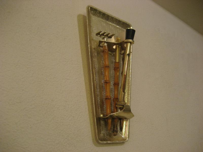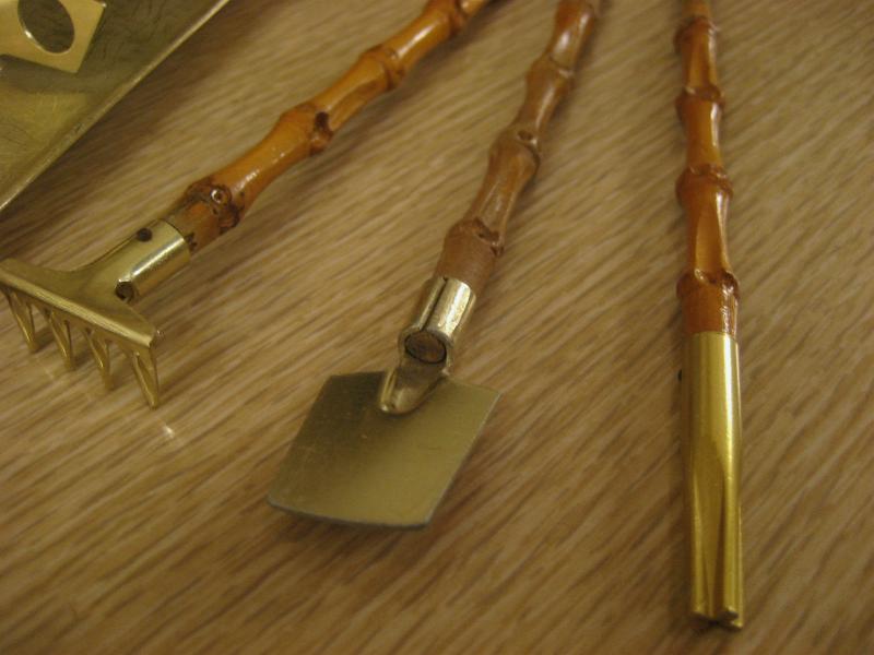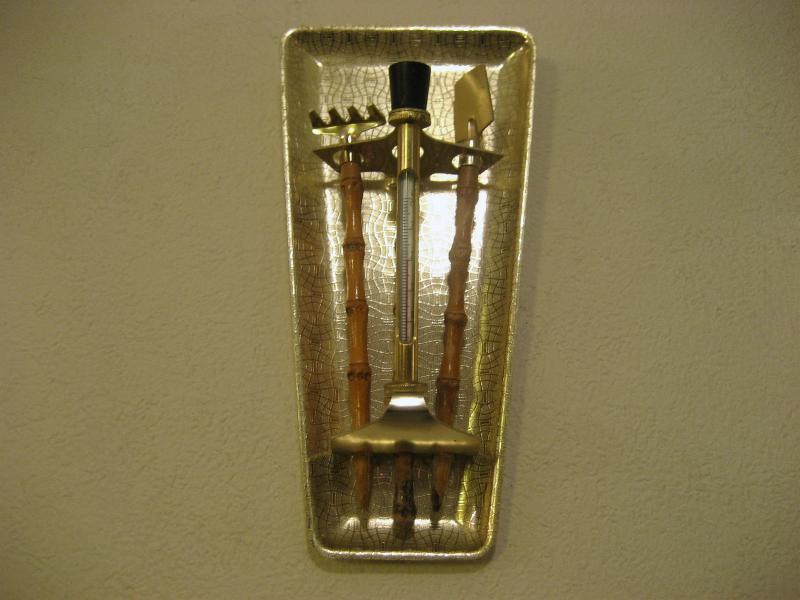 | ビンテージガーデニングセット / 50-60年代 ENGLAND. スモールサイズのガーデニングセット。ショベルと土ならし用のフォーク、種穴あけ用?のドリルの3本でそれぞれバンブーハンドルのクールセット。アトミックシェイプのホルダーには温度計(℃)付き。プランターなどの入れ替えなどなどに。。。クールでGOODなビンテージピース! |