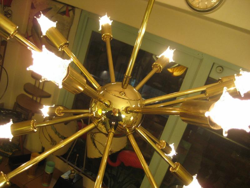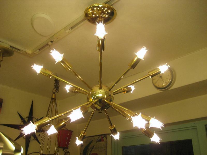 | ビンテージスプートニクランプ / 50年代 MOE LIGHT, USA. 16灯タイプ (スター球16個付き) MOE Light社の16発ビンテージスプートニク。センターの球体からでたアームが独特のシャープさを見せるクールでGOODなスーパーライティングピース。。。 お部屋の雰囲気一発で変わります! 電源は家庭用引っ掛けシーリングに交換済ですのでかんたん設置、すぐに使用できます。 ※スター球は現行品です。 |