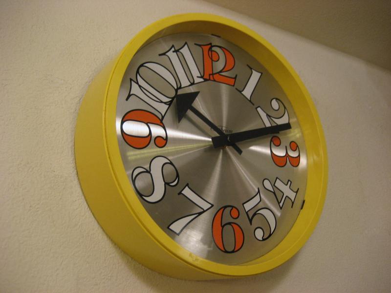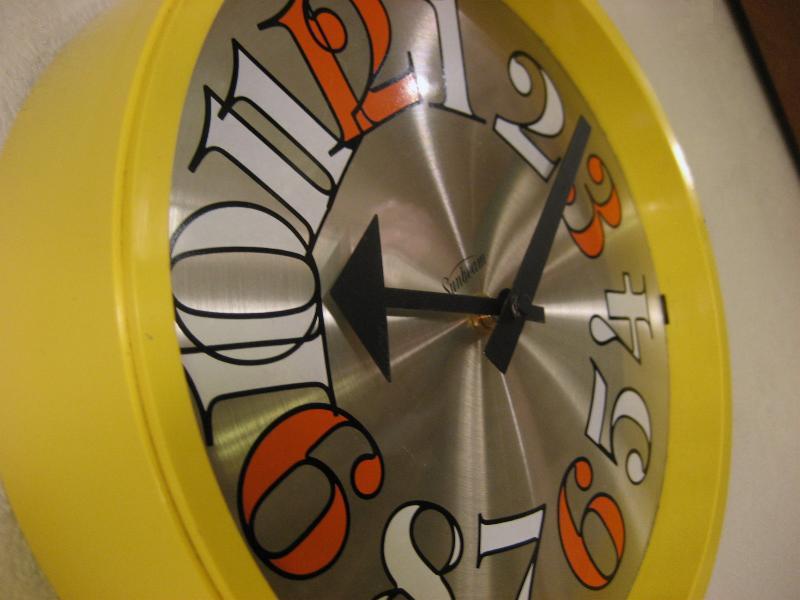 | ビンテージウォールクロック / 60年代 SUNBEAM, USA. ハワードミラーライクなサンビーム社製ビンテージ壁掛け時計。イエローカラーボディケースでシルバーメタル文字盤、ホワイトとオレンジのダイヤルインデックス。シンプルで長く使えるクールでGOODなビンテージタイムピース! ムーブメントはバッテリータイプ(単3x1個使用)に交換済みでですので時間は正確です。 |