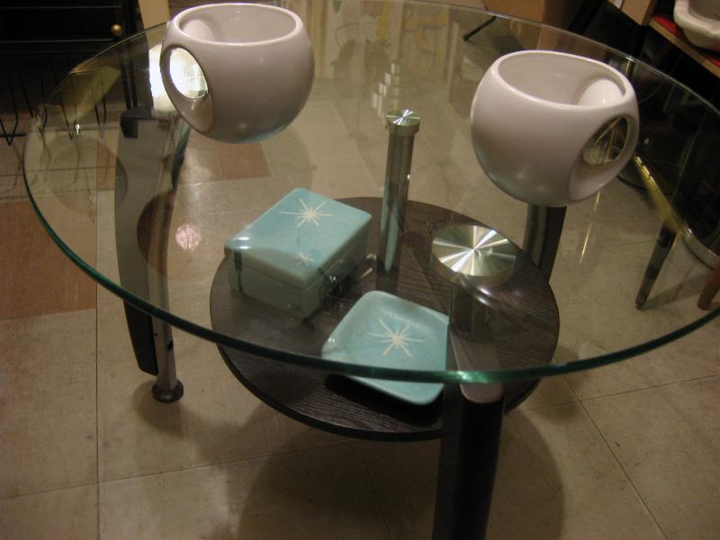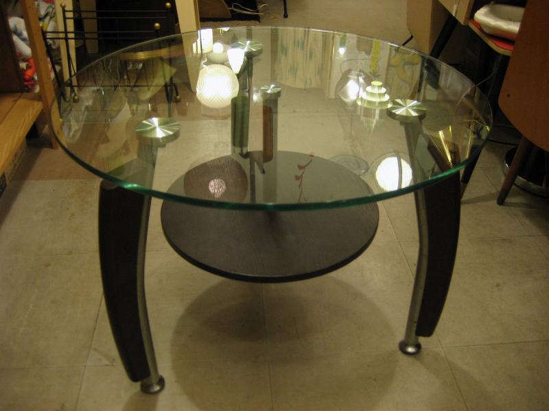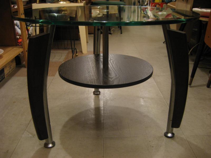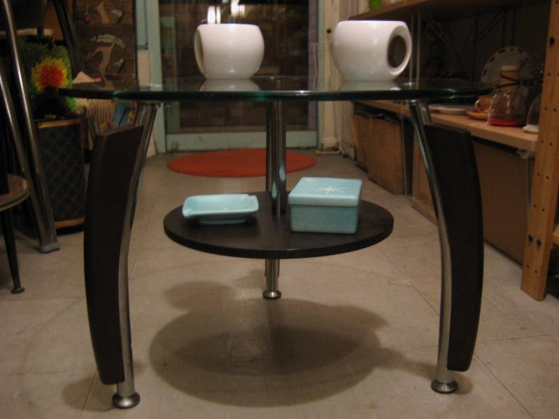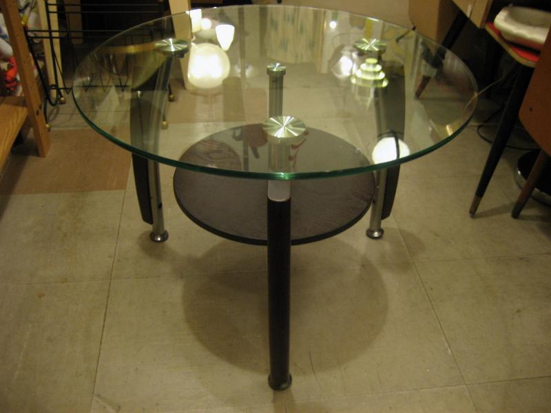 | ビンテージラウンドテーブル / 70年代 USA. ガラストップのラウンドシェイプテーブル。内側にウッドシェルフが付いているので小物類が置けてとっても便利。3本レッグでクロームとウッドのコンビネーションタイプ。クールでGOODなビンテージフロアピース! |
