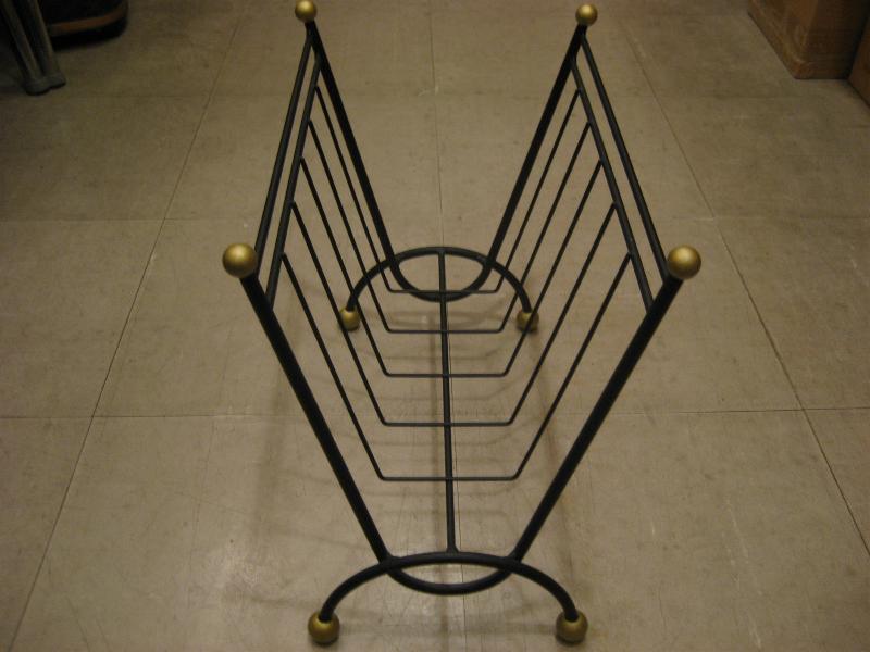 | ビンテージアイアンマガジンラック / 50-60年代 USA ブラックアイアンのマガジンラック。レッグとトップにゴールドボールアクセント。チェアやソファサイド、テーブルサイドなどにクールでGOODなビンテージフロアピース! |