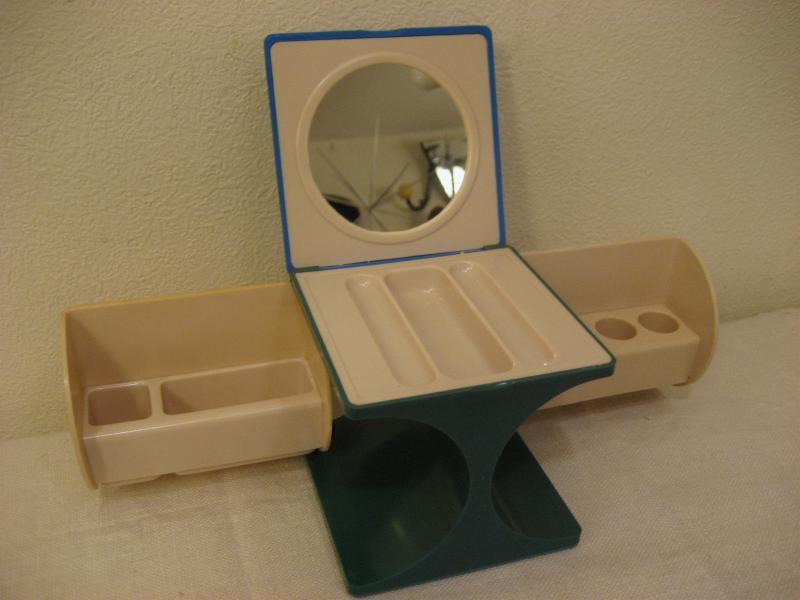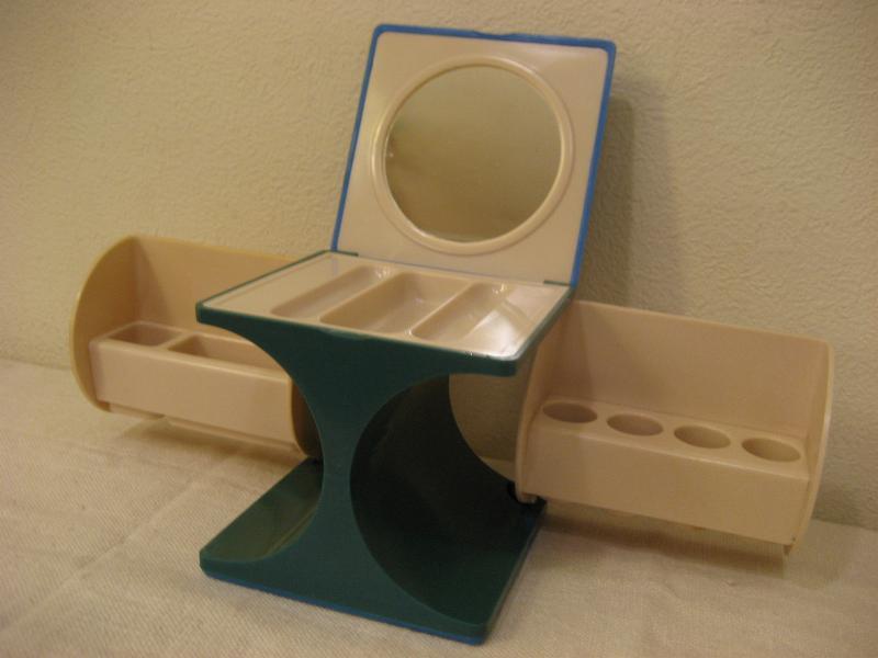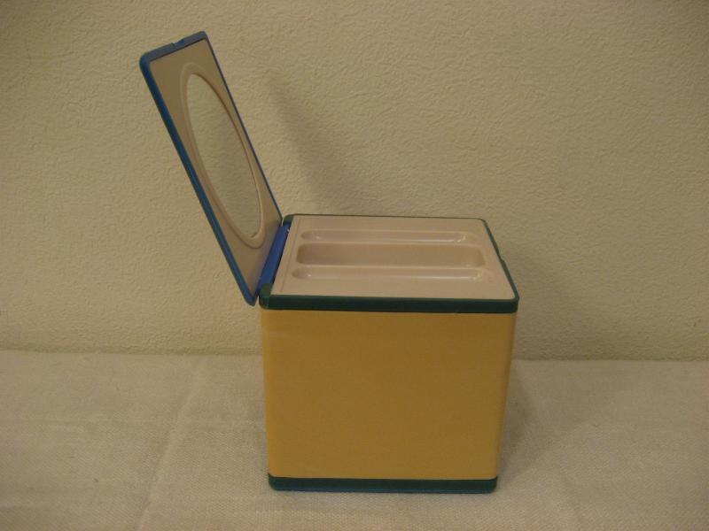 | ビンテージメイクアップボックス / 60-70年代 USA. MADE IN HONG KONG キューブシェイプのコンパクトスタイルコスメボックス。トップを開くとミラーとトレイ、両サイドを開くとリップやブラシなどお好みで使えるスタンドタイプ。クールでキュートなビンテージバニティセット。コンパクトなのでトラベル用としてもGOOD! |