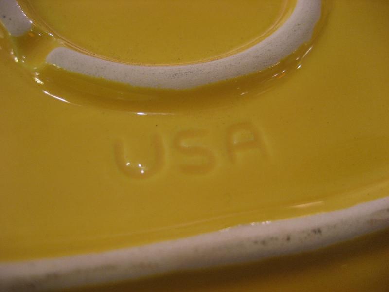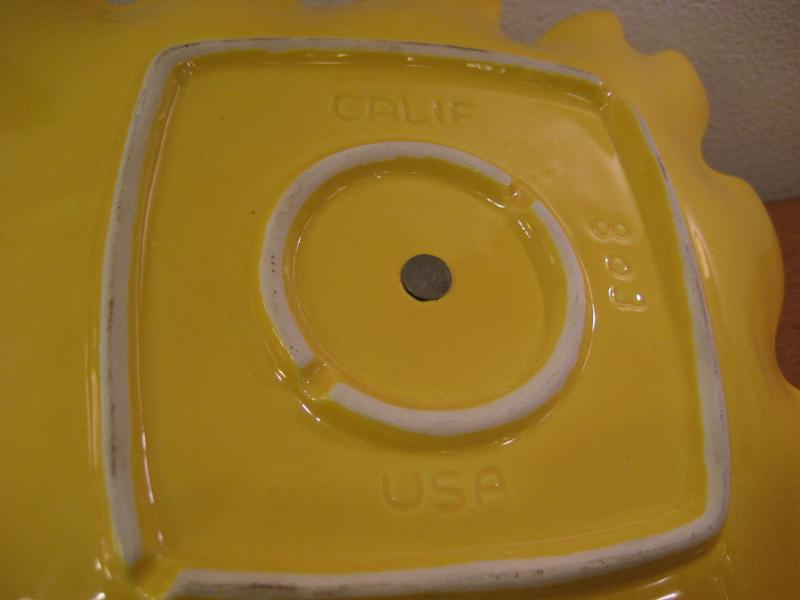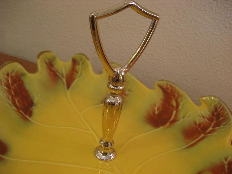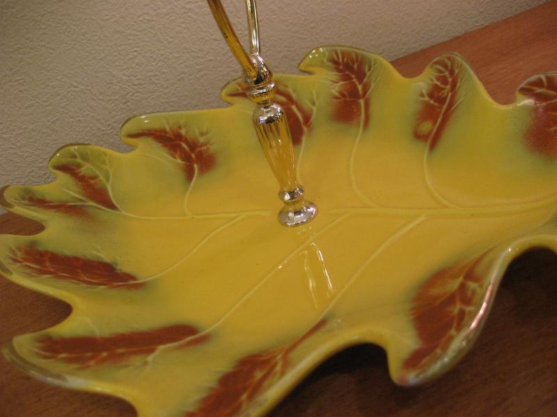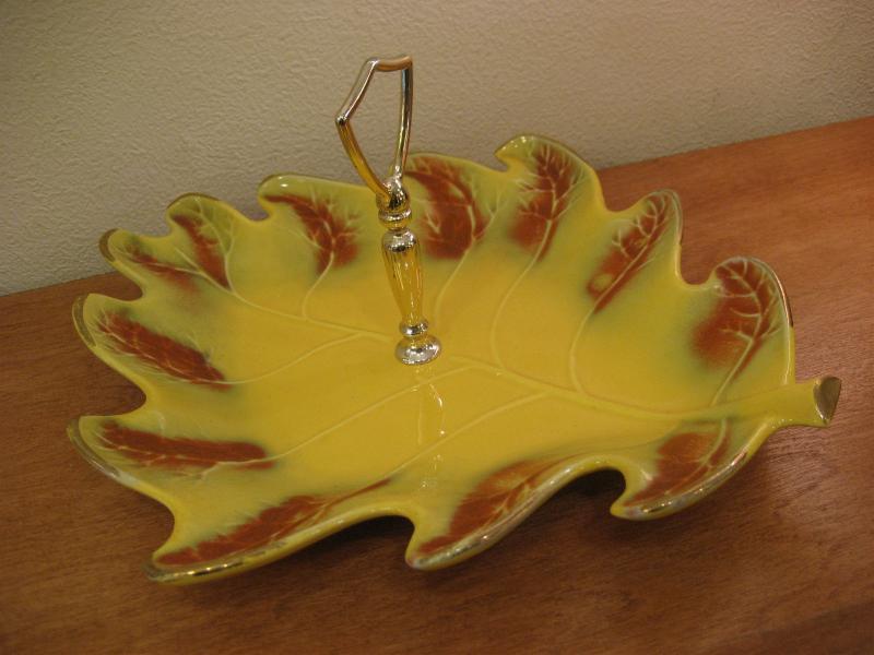 | ビンテージディッシュ / 50年代 USA. カリフォルニア陶器。リーフシェイプのハンドル付きビンテージディッシュ。お料理やスナック、フルーツはもちろん、灰皿や小物入れなどテーブルトップディスプレイにクールでGOODなビンテージテーブルピース! |