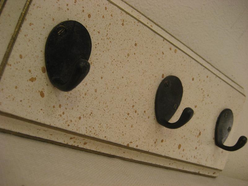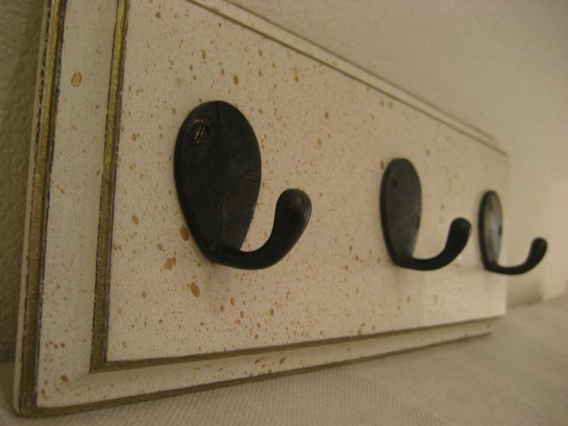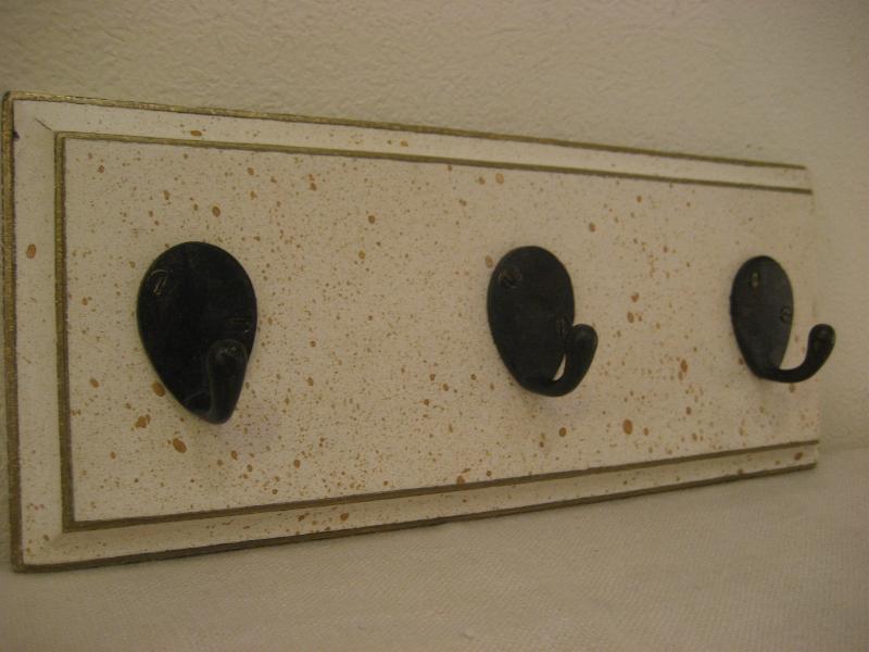 | ビンテージウォールフック / 50-60年代 USA アイボリーホワイトベースにゴールドアクセントのビンテージ壁掛けフック。アイアンメイドのシンプルなフックが3個付いたウォールプレートでキッチンアイテムやカップ、またはKEYなどのフックにも・・・ クールでGOODなビンテージウォールピース! |