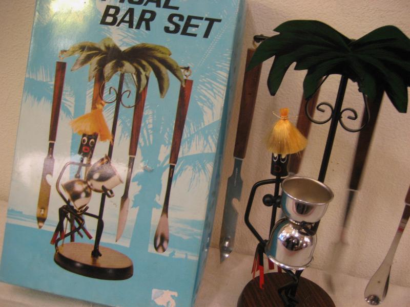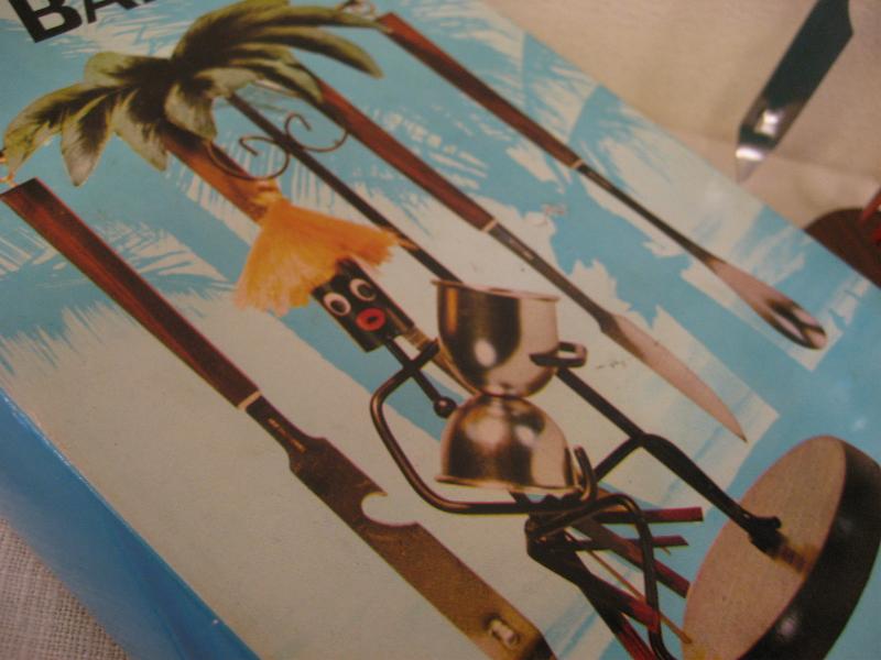 | ビンテージブラックBARウェアセット / 50-60年代 USA オリジナルBOX付 アイアンメイドの黒人にバーツールがセッティングされたバーウェアセット。ツールのステンレス部分はJAPANメイド、ウッド部分はチーク材と思われます。クールでGOODなビンテージコレクティブルピース! |